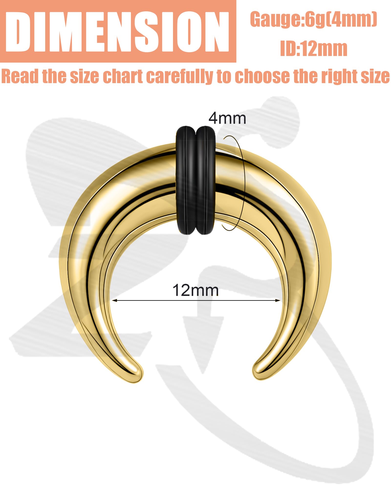 ❀Septum Pincher Size Reference——Septum piercing taper gauge: 16g(1.2mm), 14g(1.6mm), 12g(2.0mm), 10g(2.5mm), 8g(3.0mm), 6g(4.0mm), 4g(5.0mm), 2g(6.0mm), 0g(8.0mm), 00g(10mm); Inner diameter: 8mm/ 10mm/ 11mm/ 12mm/ 15mm/ 16mm/ 18mm/ 22mm/ 25mm. Select suitable size to easily expand your piercing place without too much pain.