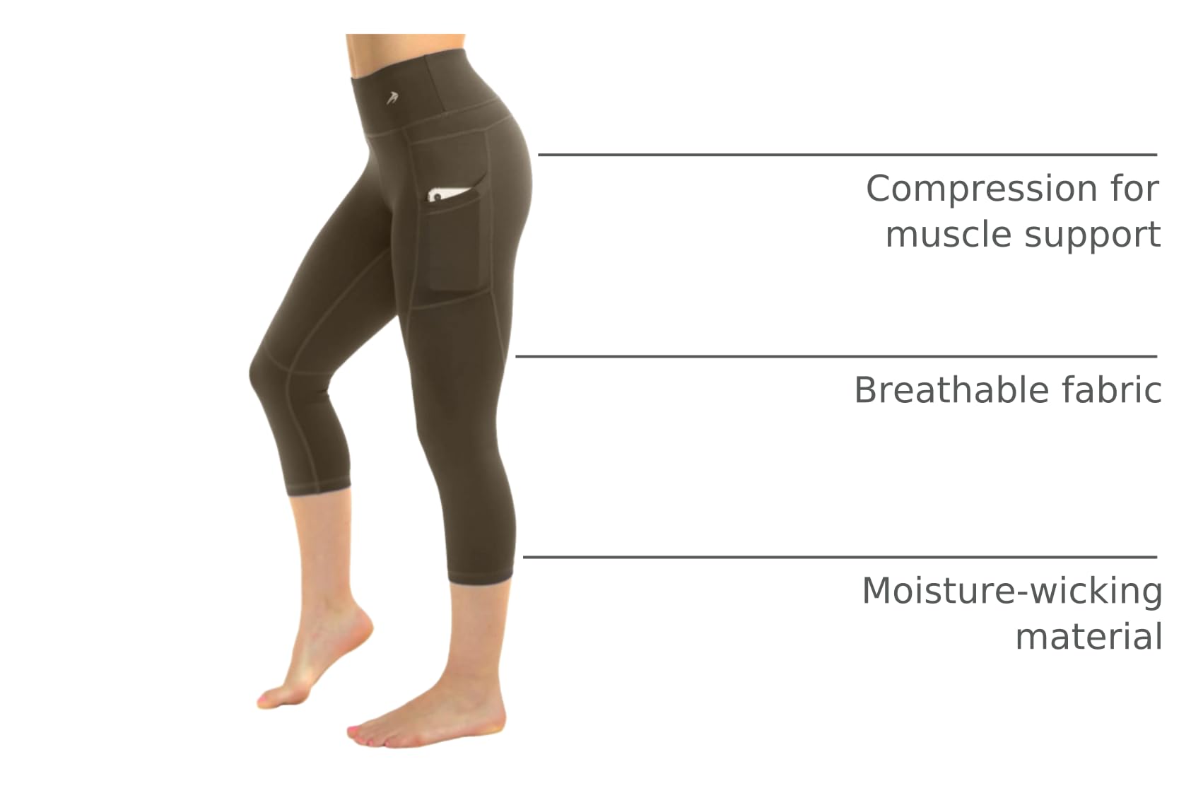 Versatile Compression Capris for Active Women: These high-waisted compression leggings with pockets are the ultimate blend of style and function. Ideal for yoga, running, or gym workouts, they provide comfortable yet firm support, perfect for women seeking tummy control leggings for both exercise and casual wear.