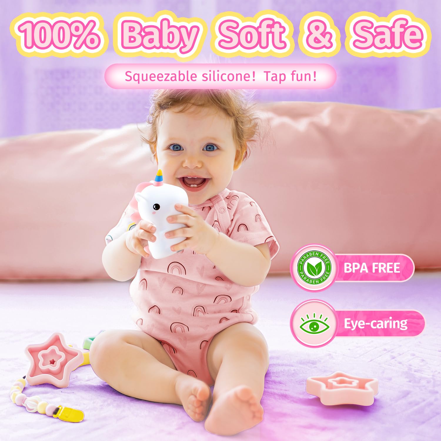 đťă100% SAFE & SOFT SILICONE NIGHT LIGHT FOR KIDSăThis toddler night light for kids night light is a 100% SOFT&SAFE silicone night light kids. The cute night light for kids night light is as soft as a cake to TAP FUN and rigorously tested for safety like RoHS&CE. Baby can even put the nightlight for kids room in mouth. The BPAFREE silicone night light for kids is awesome fun to tap. Every time you tap the touch night light for kids,it changes differently! Give the awesome baby night light for kids night light kids,toddler night light for kids night light kids,cute night light for kids night light kids,nightlight for kids room,nursery night light kids lamps for bedroom girls as unicorn gifts!