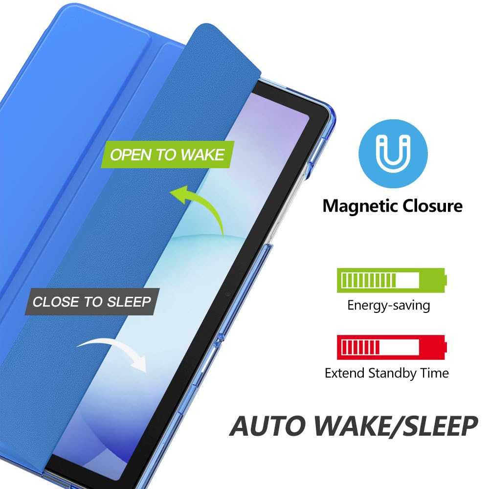 Auto Wake/Sleep: Built-in magnetic strip, automatically wakes or puts your tablet to sleep when the lid is opened and closed. This Galaxy Tab A11+/A9+ Case Protects and extends battery life