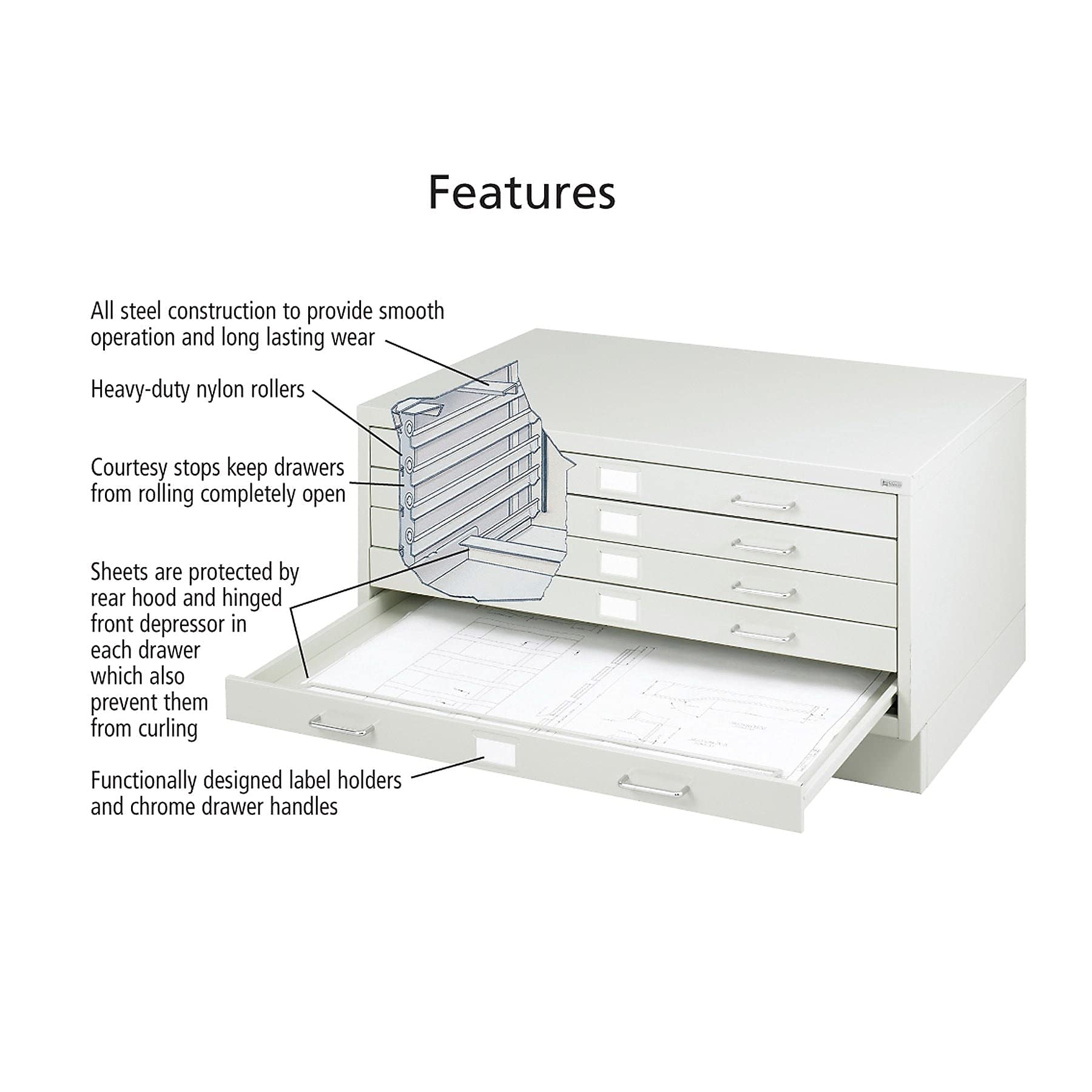 Safco Products 4969LG Facil Steel Flat File, 5 Drawer Metal Cabinet, Small (Optional Base Sold Separately), Light Gray