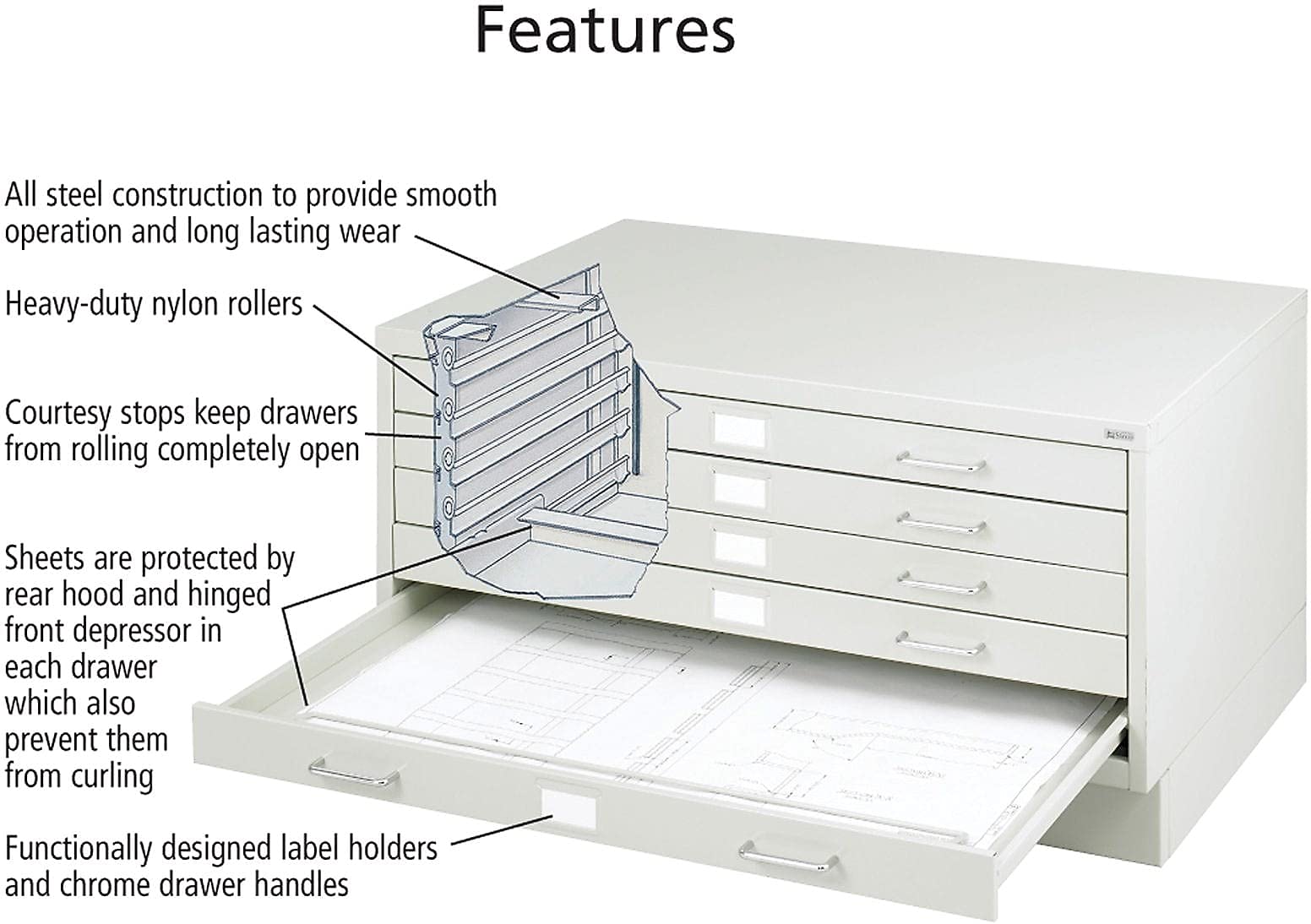 5 DRAWER FILE CABINET- Economical flat file, light gray cabinet with steel, powder coat finish