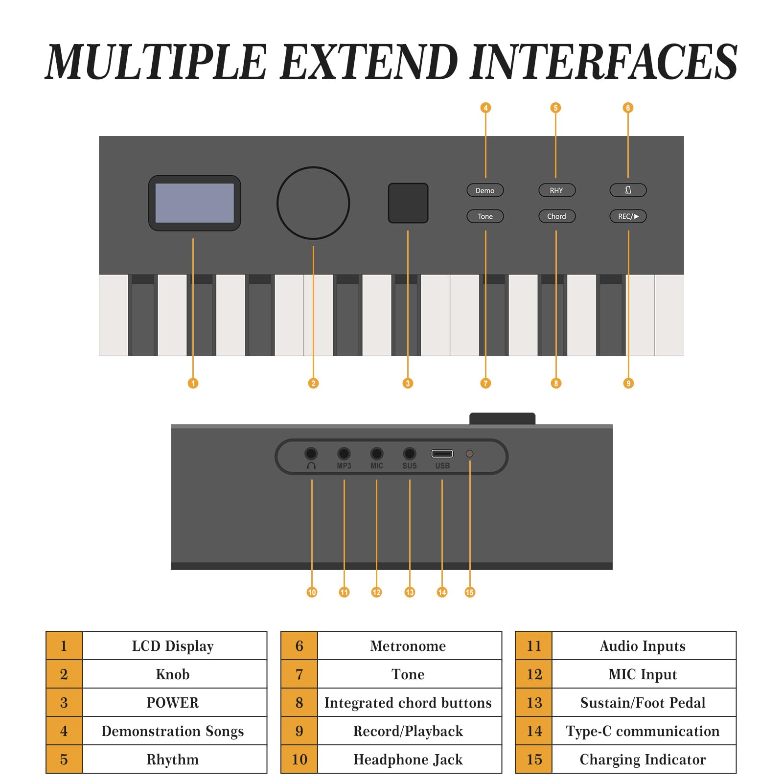 🎹Versatile Connectivity: This electric piano features MIDI support and a range of connection options for music editing and recording. Connect to a microphone, headphones, USB, and more to enhance your musical capabilities and elevate your playing experience.