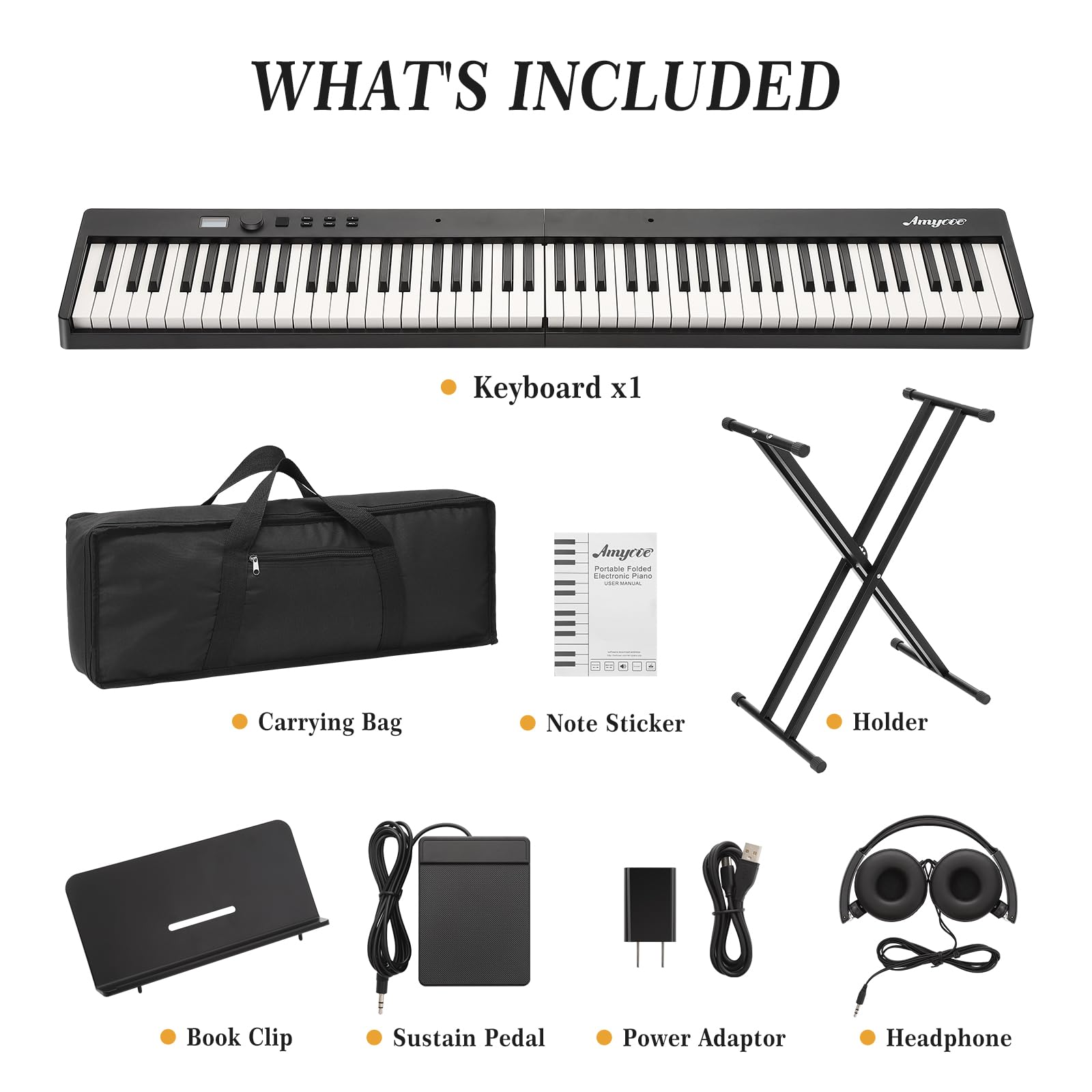 🎹Innovative Foldable Electronic Piano: With its unique foldable design, this electronic piano opens and closes at 180 degrees, ensuring effortless portability and convenient storage. Perfect for musicians on the go, it combines functionality with a space-saving solution.