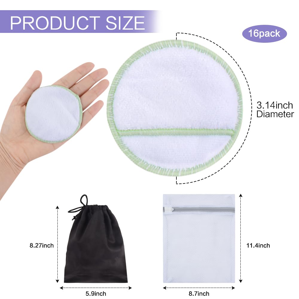 Portable and useful: The diameter of the makeup remover pads about 3.15 inch, appropriate size for facial skin care and easy to carry. Use these zero waste products anywhere with our chic & hygienic travel bag.Our makeup remover cloth pads can be reused