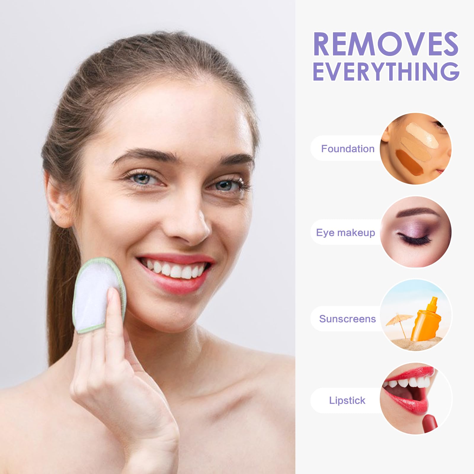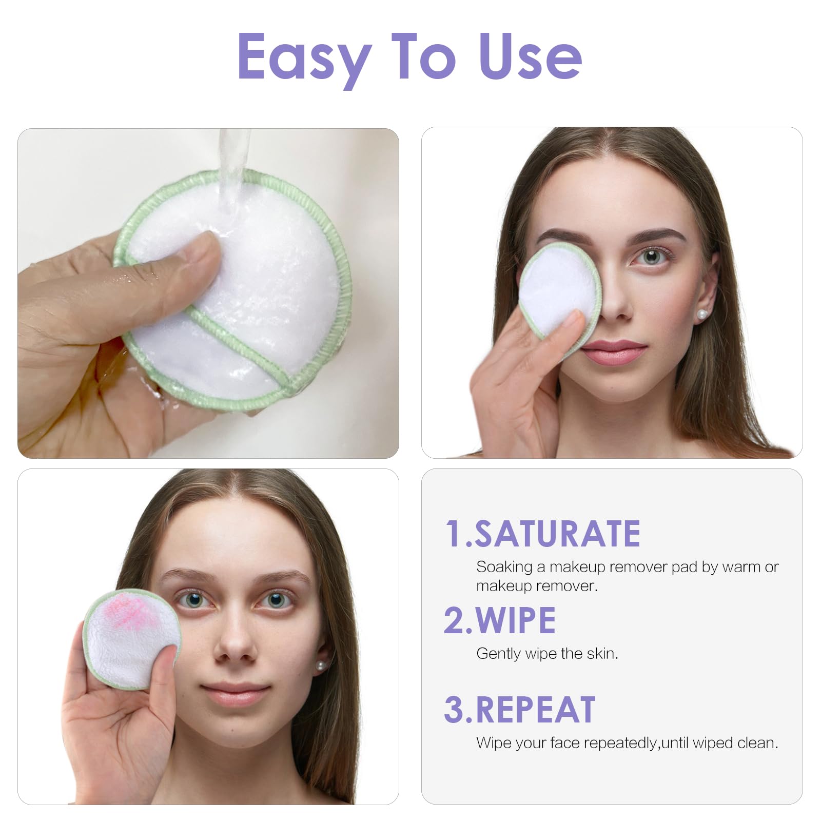 Washable and reusable: The makeup remove pad is washable because its microfiber material, you can put the pads into the laundry bag when wash them to avoid the pads disappear in the washer, regular wash and reuse