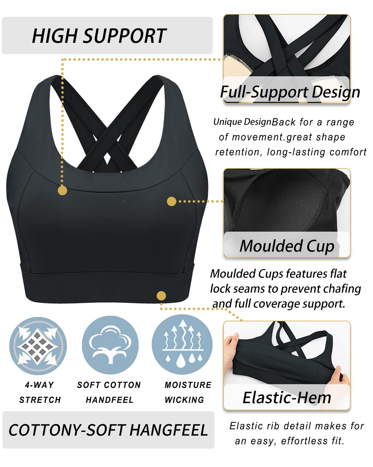 VERSATILE SPORTS BRA:Perfect full supports sports bra for yoga,exercise,fitness,any type of workout,or everyday use.RUNNING GIRL running sports bras for women combine fashion,function and performance.This stylish high impact sports bra is great for wearing under workout shirts as well as non-workout wear, such as tank tops and light clothing.This sports bras for women high support is intended to provide high impact for great shape retention,long-lasting comfort.