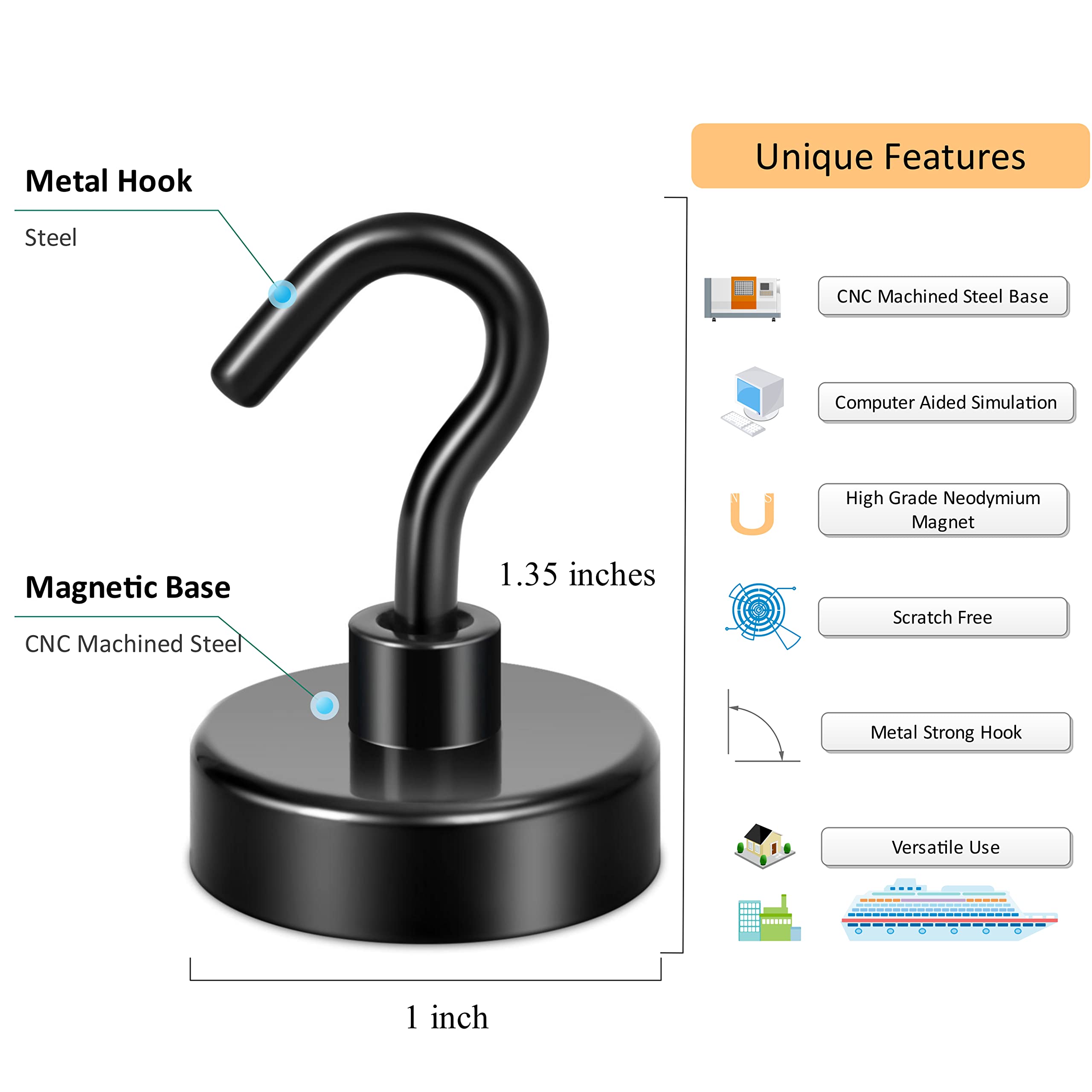 Durable Metal with Anti-Rust Finish Each magnet hook features a 4-layer plating for extra durability, rust resistance, and a sleek mirror-like finish. These metal hooks maintain strength and shine even in humid environments, making them reliable for long voyages.