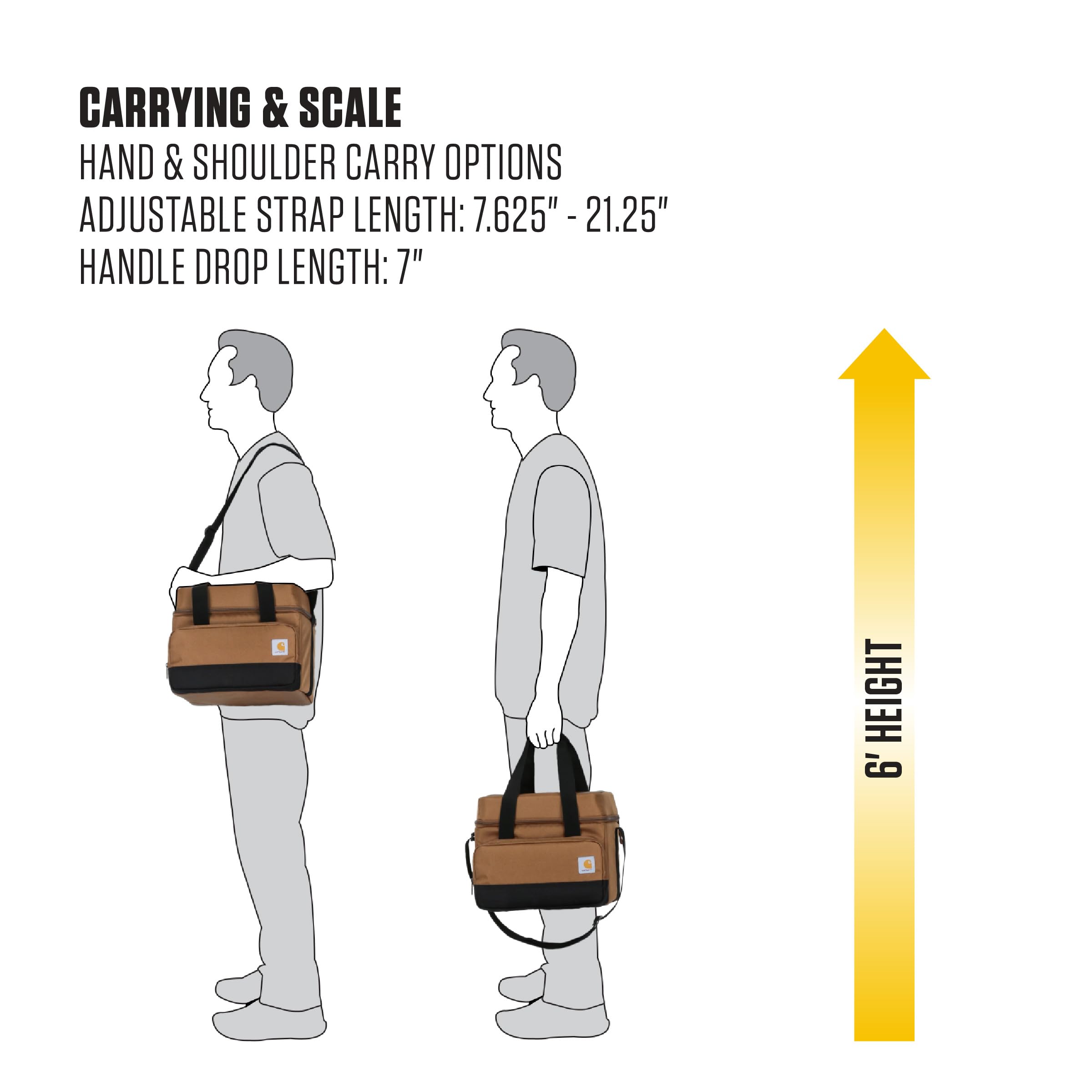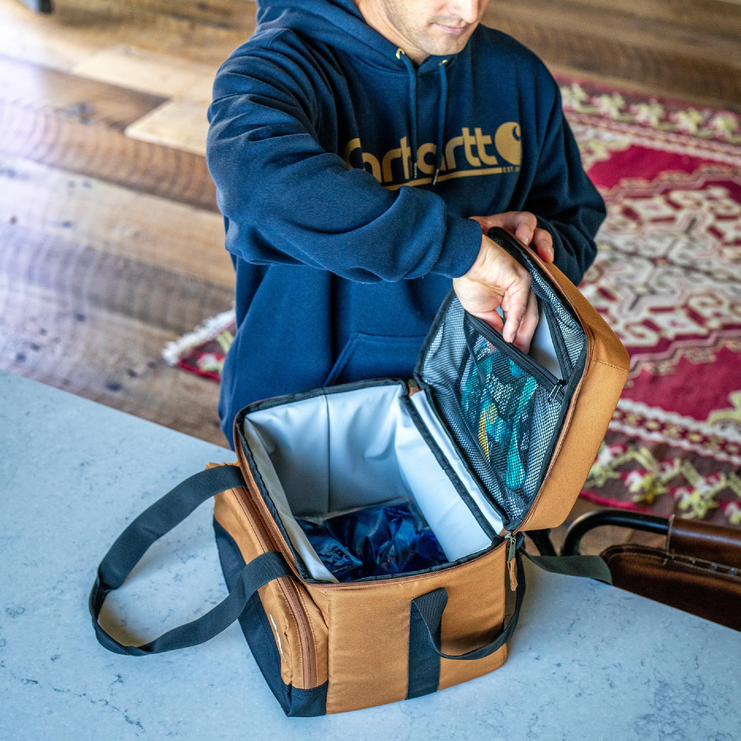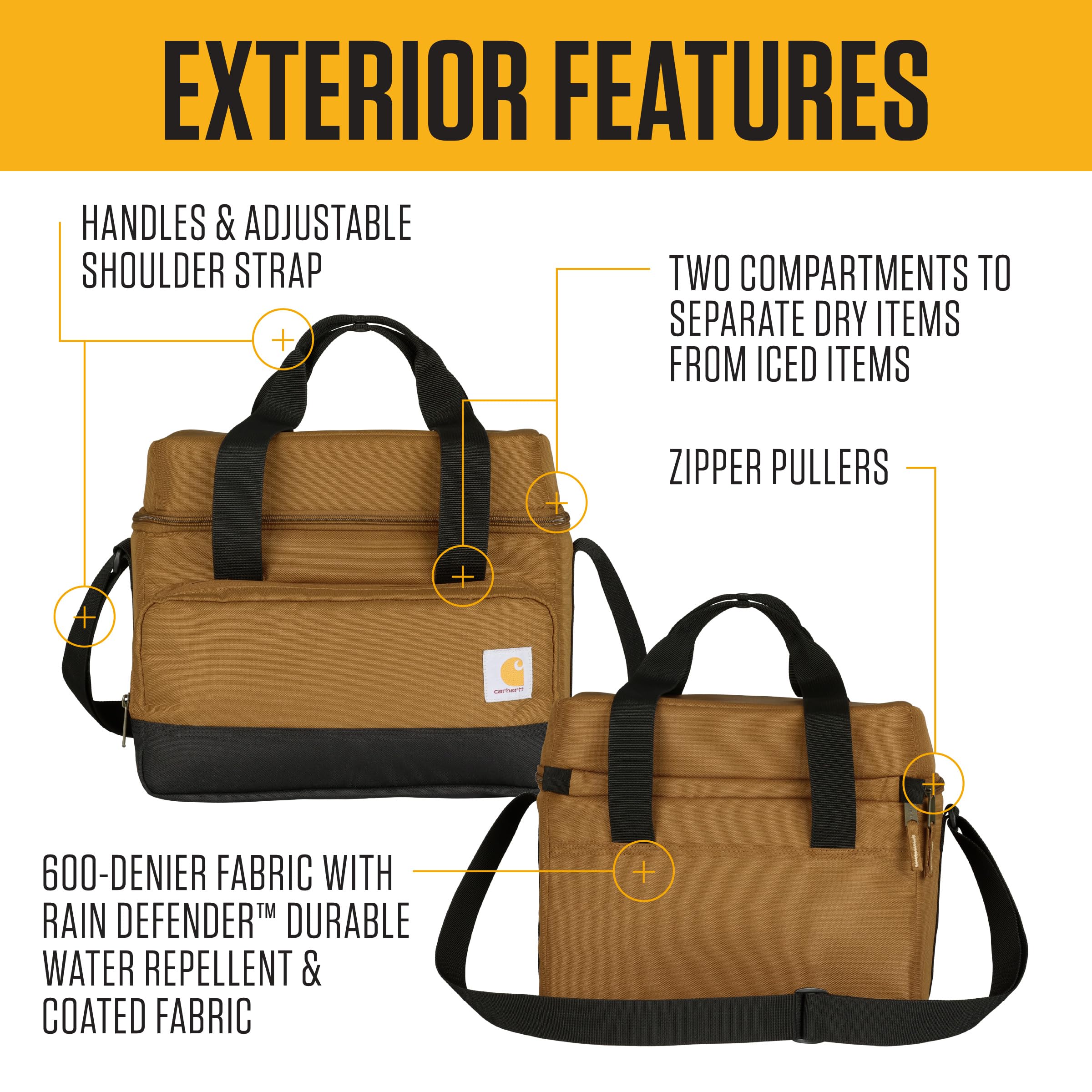 The Carhartt Insulated Two Compartment Lunch Cooler is perfect for any occasion, built to withstand the harshest elements while maintaining your food’s freshness. This versatile lunch box for women and men features a fully-insulated base compartment that offers ample space for your favorite meals and snacks, keeping them cold for hours. Whether you're headed to work, school, a job site, a family road trip, or a picnic, this insulated lunch bag for women ensures your food stays fresh all day. Its spacious interior easily accommodates sandwiches, fruits, beverages, and more without compromising on quality. Crafted from durable 600-denier polyester with Rain Defender DWR coating, this large lunch box for women is designed for daily wear and tear. The rugged construction protects your lunch from light rain, while the synthetic lining enhances durability. Reinforced seams and sturdy zipper closures add extra reliability, making this lunch box women love a dependable companion for all your adventures.