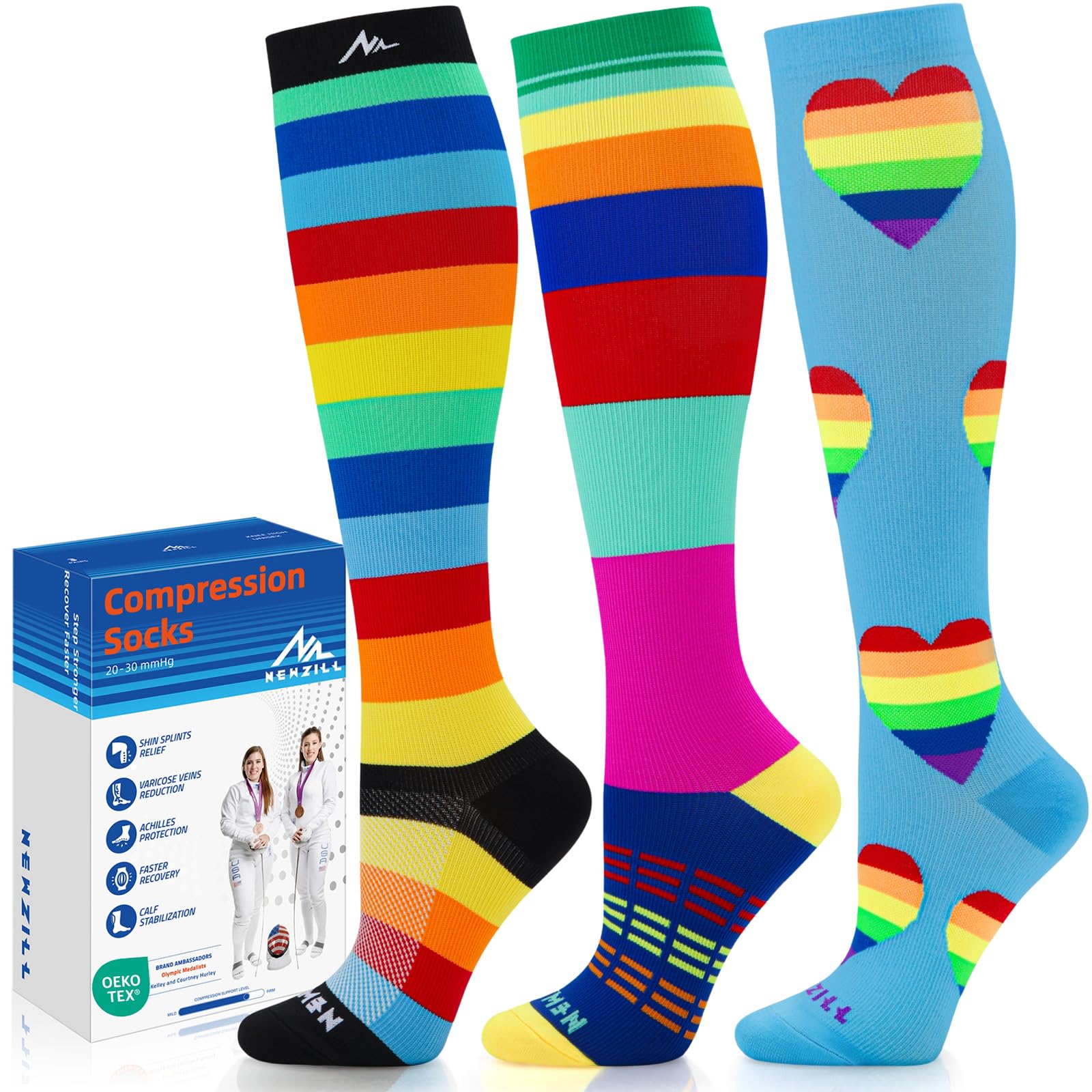 Our NEWZILL premium compression socks are designed to be worn comfortably all day long for all day compression. Our unique graduated garments are designed to deliver the most optimal degree of compression to support vital muscle groups. This technology is aimed to improve the flow of oxygen throughout the legs, helping you improve your endurance and stay active for longer periods of time. With a perfect size for everyone, and available in the latest Trending Fashion Colors you're sure to find the fit and style you need to perform and look your best. Available in 8 stylish colors for men & women!