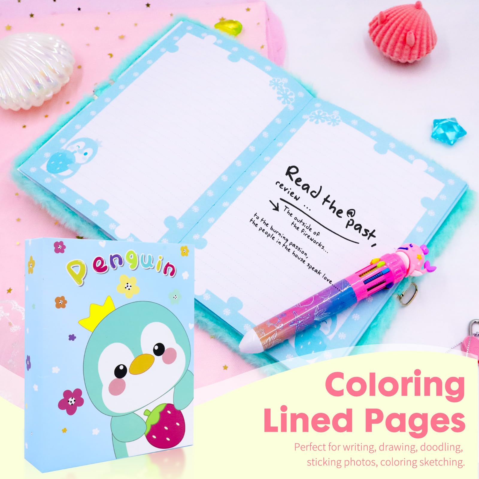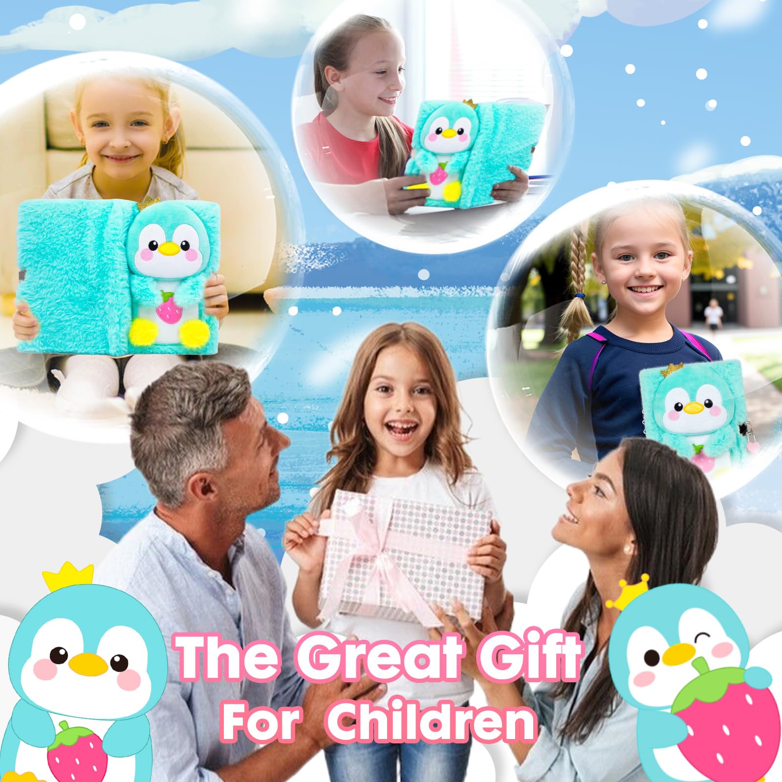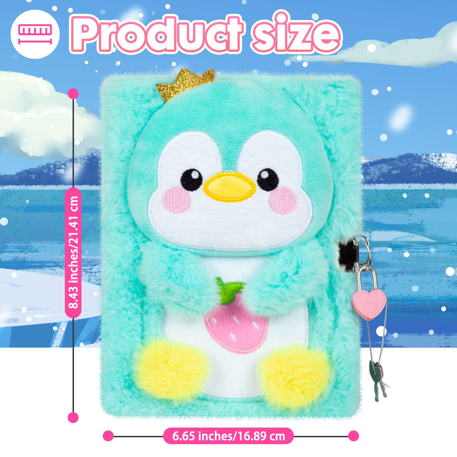 Plush Penguin Journal: Dimensions: 6.65 x 8.43 x 1.18 inch; With 160 writing lined pages, 1 pink cute heart shaped lock, 2 silver keys; An amazing diary gift for little girls age 5-12 years old