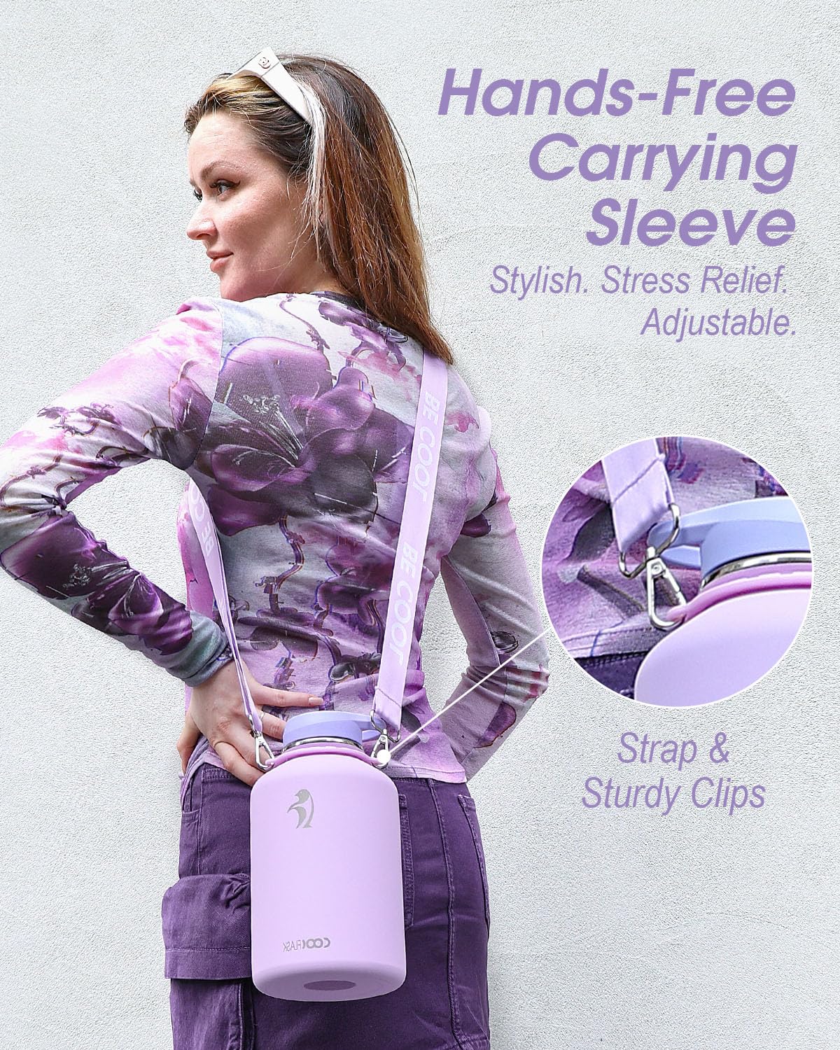 Unleash Your Style, Hands-Free: Elevate your fashion game with this half gallon water bottle's exquisite adjustable shoulder straps and eye-catching design. Whether worn crossbody, single-shoulder, or hand-held, it's a statement piece that complements your vibrant personality.