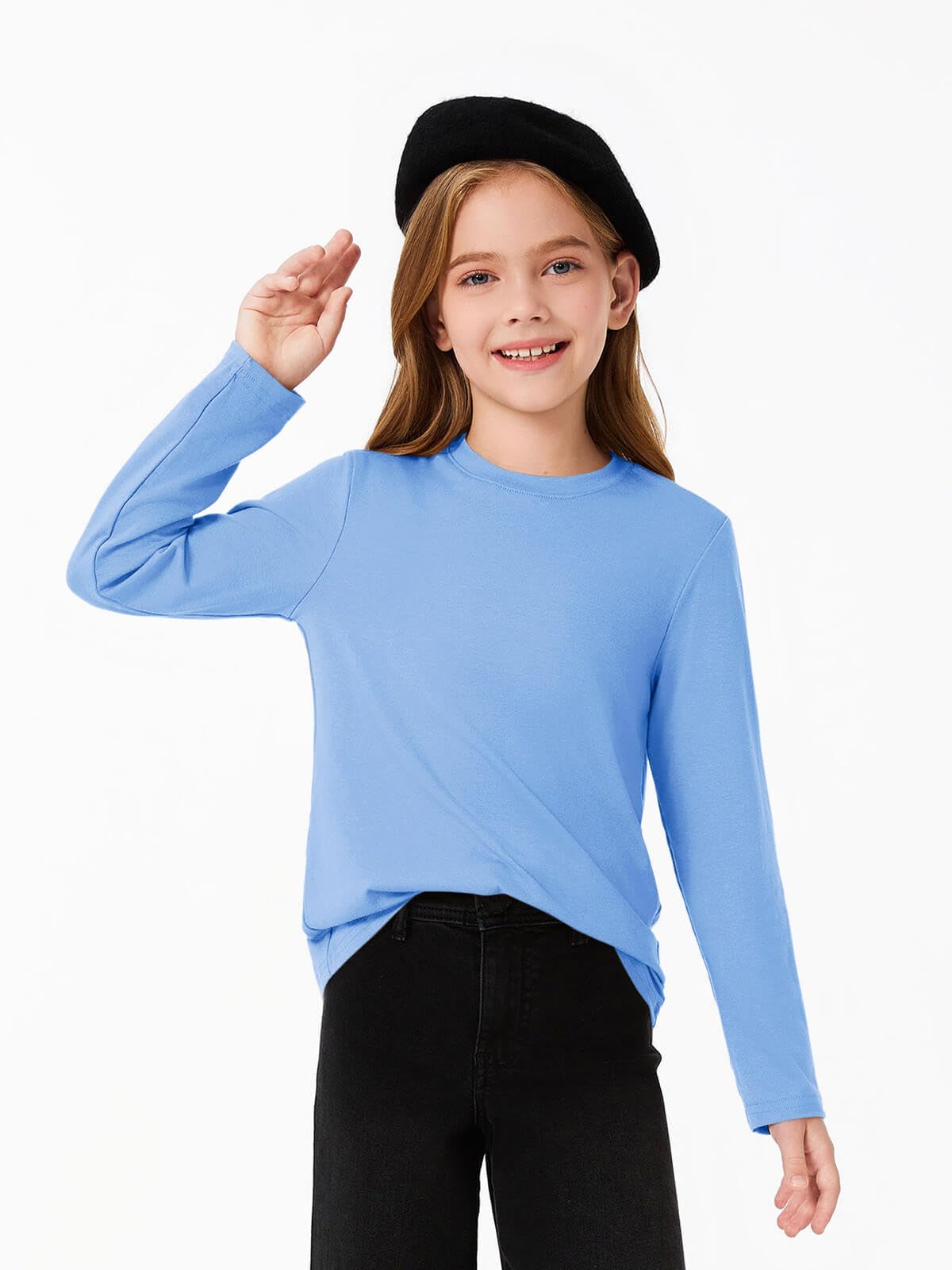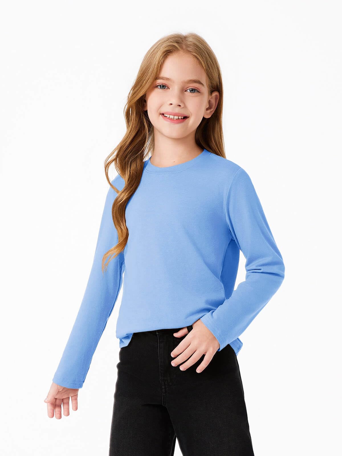 Feature: Girls fall t-shirts, long sleeved basic tees, relaxed fit, solid color never out of date, the crewneck design adds a touch of classic style that goes with just about anything