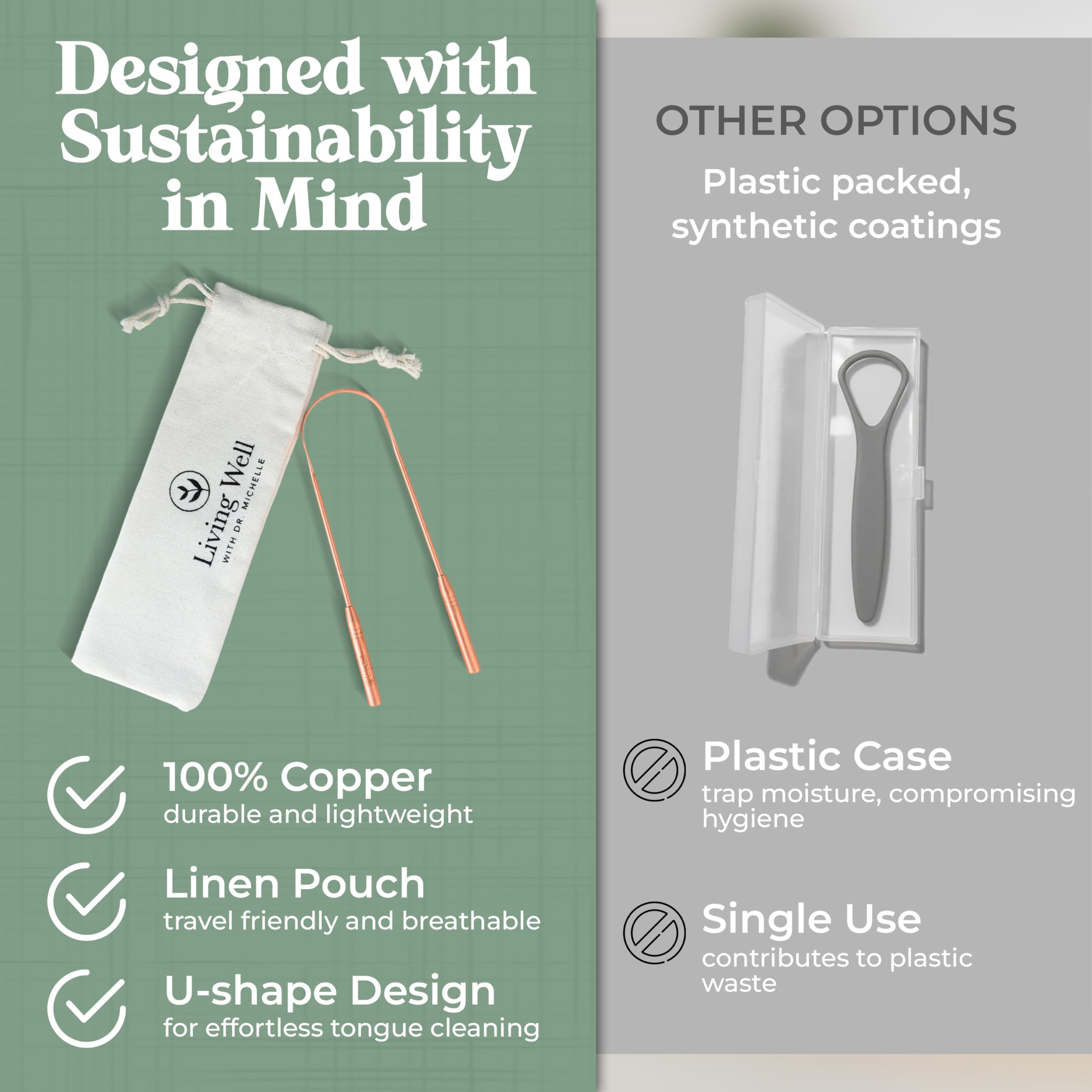 PREMIUM COPPER CONSTRUCTION – Crafted from corrosion-resistant copper, our tongue scraper ensures long-lasting durability and effective tongue cleaning. Say hello to a healthier mouth!