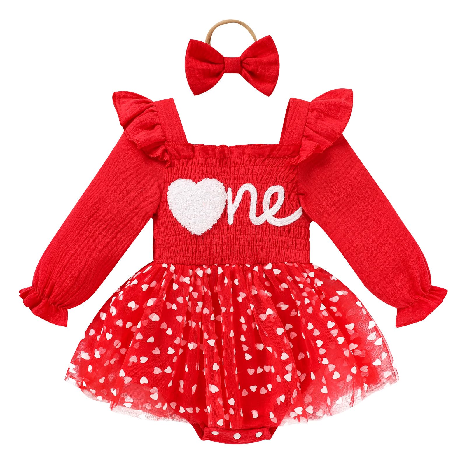 Design: Newborn baby girl playwear romper dress with long sleeve, solid color, multi-layered tulle, Snap leg openings for easy diaper changes, easier morning for novice mother.Cute princess 1st birthday outfit, fashionable and adorable embroidery ONE printed themed birthday clothes perfect for creating beautiful memory of her first birthday.