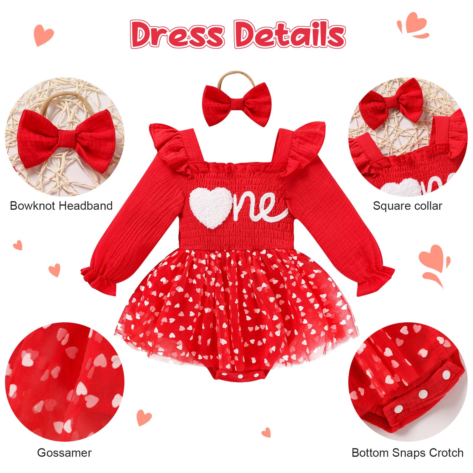 Occassion: Baby girls princess 1st birthday clothes is a best choice for 1st birthday party. Baby rompers girl tutu dress suitable for many occasions, such casual, family parties, one birthday party, baby photo, baby shower gifts, festival, fall/winter daily life etc.