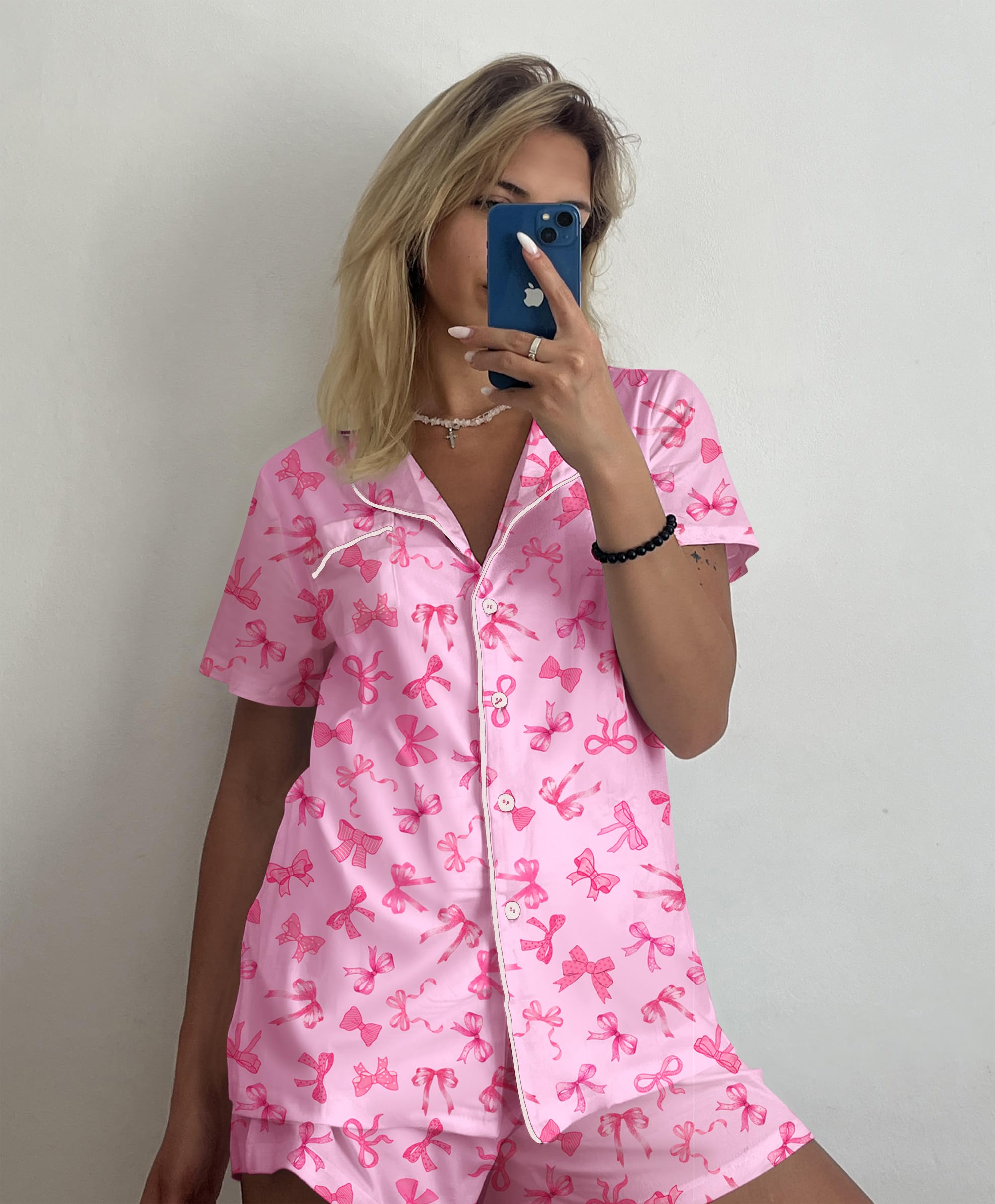 VERSATILE STYLE: Classic two-piece loungewear with short-sleeve top and boxer shorts. Relaxed fit suitable for sleeping, lounging, or casual wear.