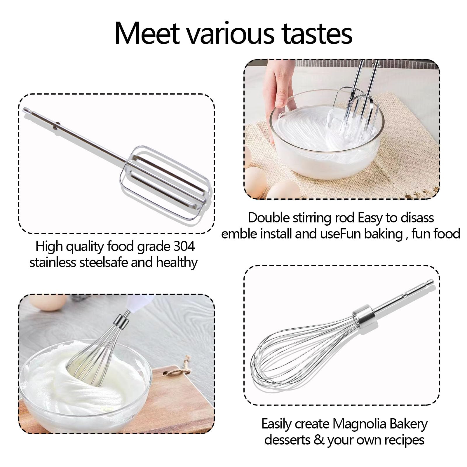【Widely Use】Hand mixer beaters can be used to mix eggs, butter, powdered sugar, and fresh cream. It can also be used to mix recipes such as biscuits and batter. The versatility of hand blender accessories is sufficient for your various baking needs.