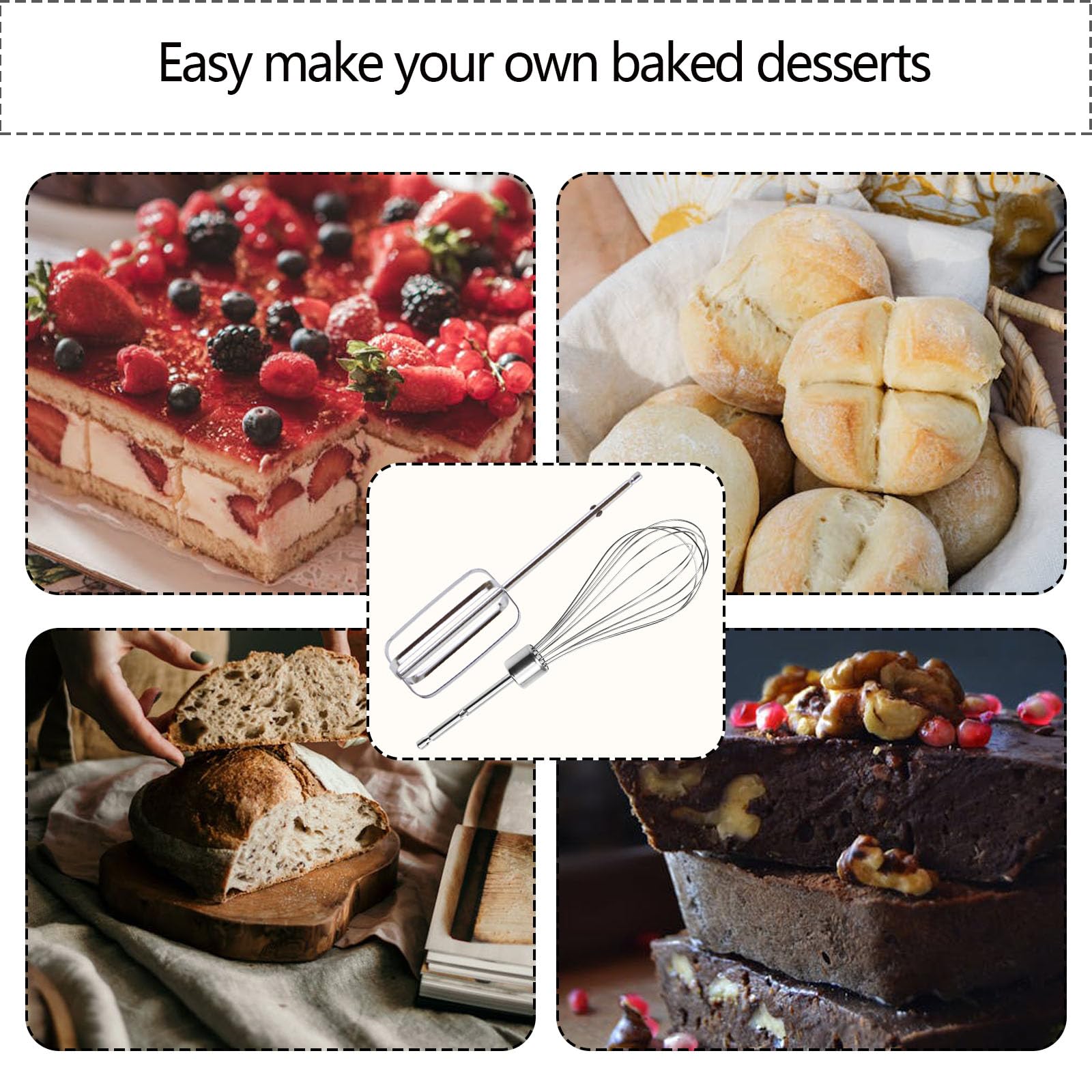 【Material Upgrade】Hand mixer beaters are made of high-quality 304 stainless steel, with corrosion resistance, and not easy to rust. Don't hesitate to replace your accessory when it is damaged, this hand mixer beaters replacement parts will bring you the same baking pleasure as new.