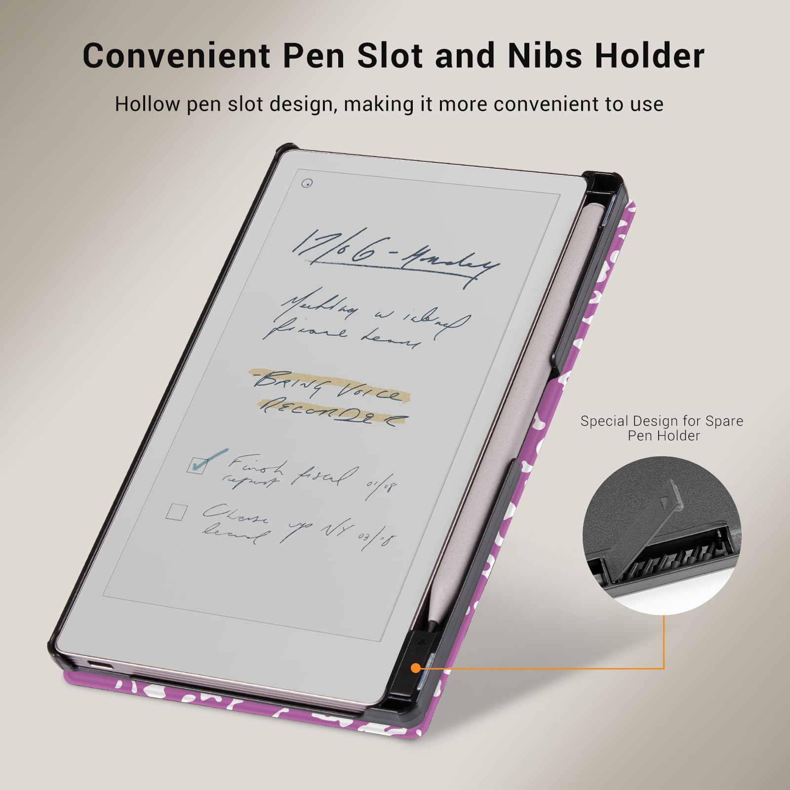 【Built-in Pen Holder and Nibs Holder】: According to the pen's adsorption making a slot to gives the marker/marker plus a home. Keep your stylus secure, and the small refill holder allows easy access, simple and practical
