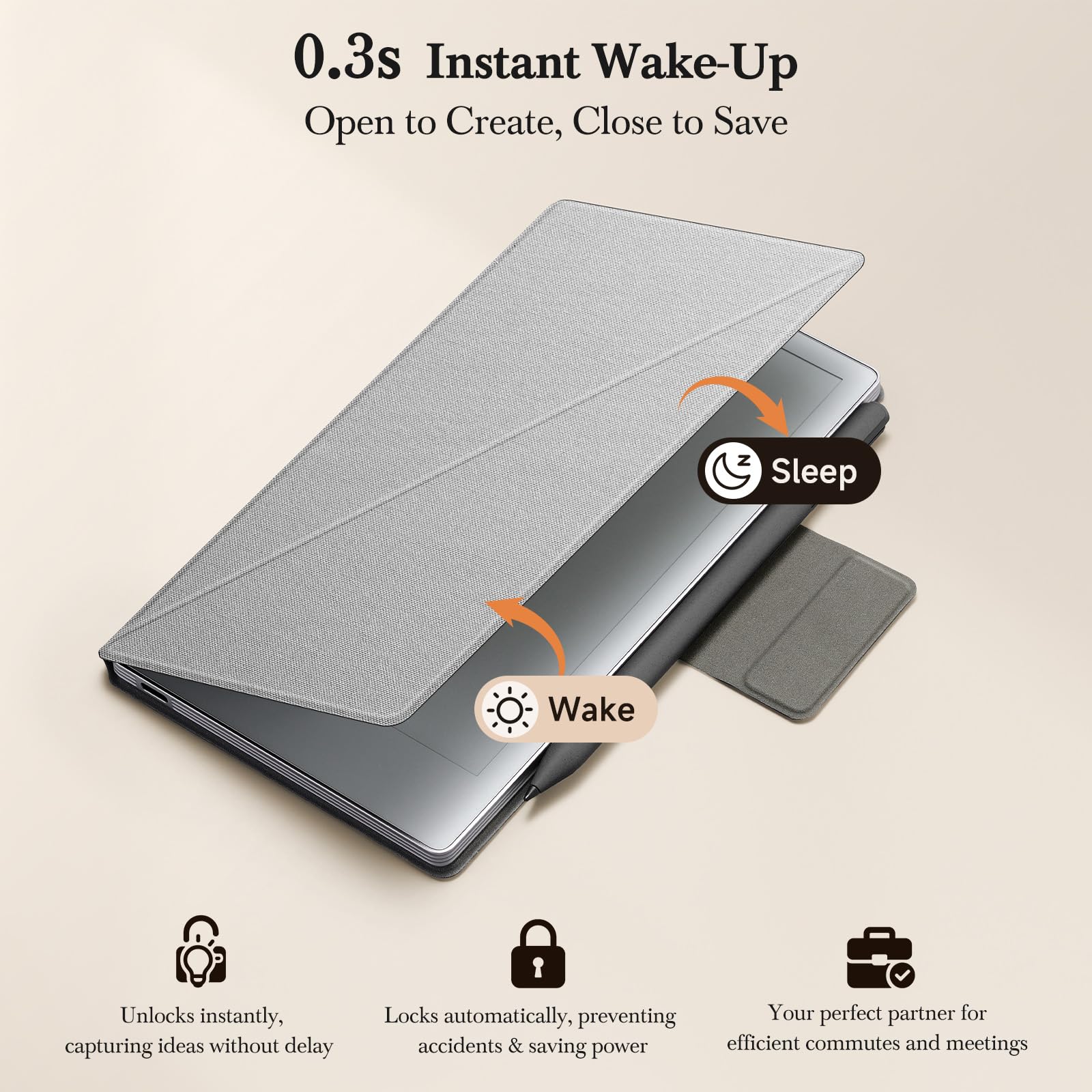 【Instant On/Off, Zero Waiting】: Experience seamless workflow activation. The smart cover enables instant wake-up upon opening (responsive in <0.3 seconds), capturing sudden inspirations without boot-up delays. It auto-locks upon closing, preventing pocket mishaps and saving battery, making it ideal for hectic commutes and efficient daily use.