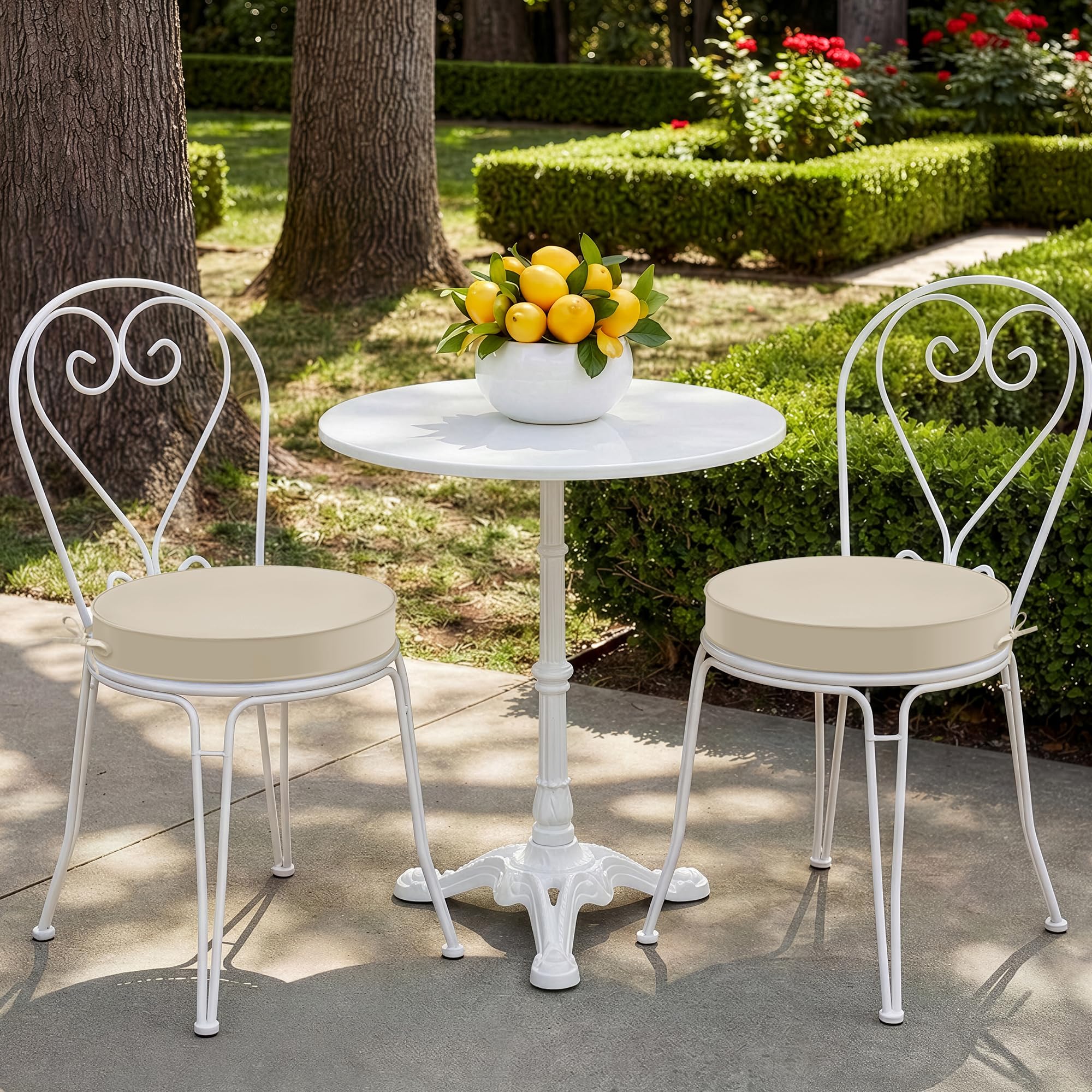 Waterproof & Fade-Resistant: Crafted from high-quality 250gsm polyester fabric, these premium bistro chair cushions are built to withstand the elements. The weather-resistant fabric repels moisture, keeping your outdoor seat cushions dry and protected from rain, while anti-fading technology preserves their vibrant colors even after prolonged sun exposure.