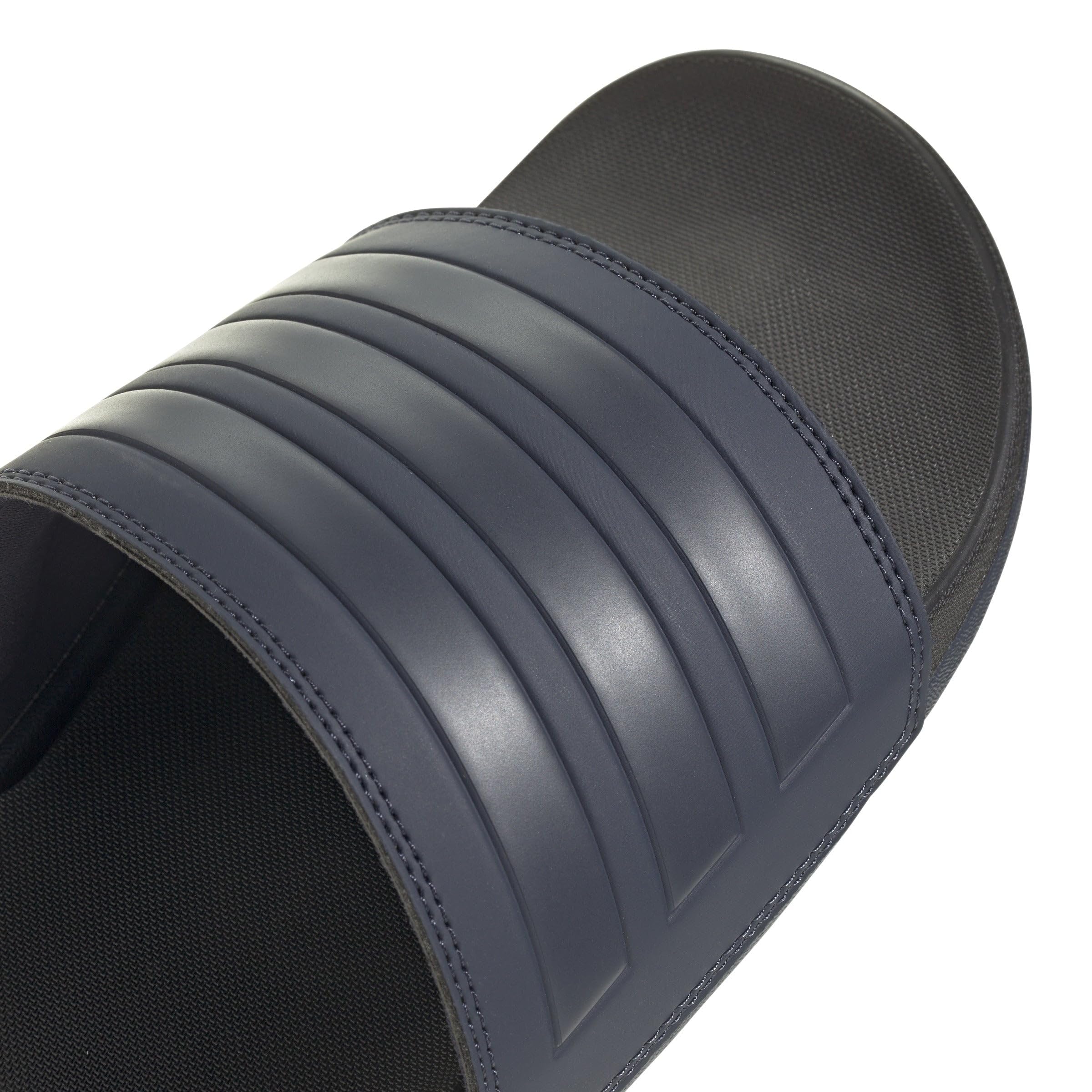 Description Get a little style with your poolside comfort thanks to these adidas Adilette Comfort Slides. They feature a lightweight EVA build and a contoured footbed for elevated cushioning. The single-bandage upper is finished with classic-look 3-Stripes.
