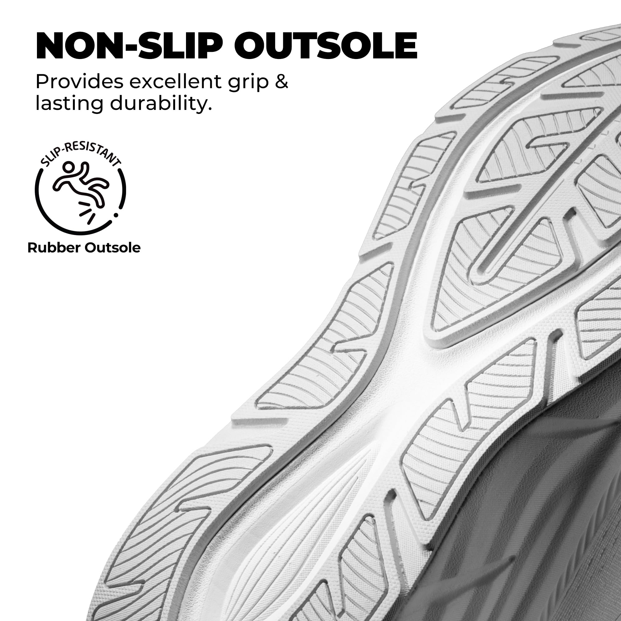 Confident & Stable: Designed for walking and running, these women’s workout shoes feature a slip-resistant rubber outsole that enhances traction and grip on wet pavements and gym floors.