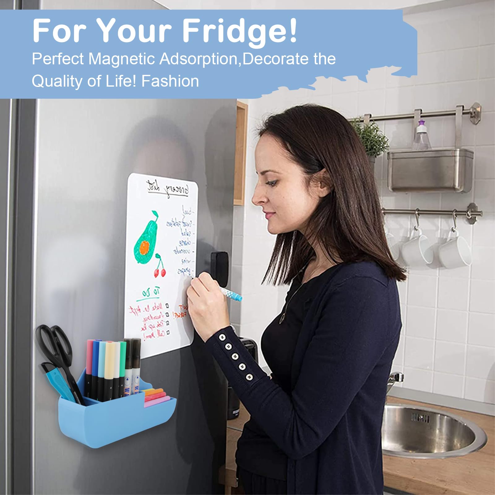 Simple and Practical:Our magnetic pen holders are suitable for holding pens, pencils, dry erase markers, erasers, rulers, children's scissors and other office, home or school supplies. Also can be served for refrigerator, whiteboard, locker or other metal surfaces.Keep your stuff always organized!