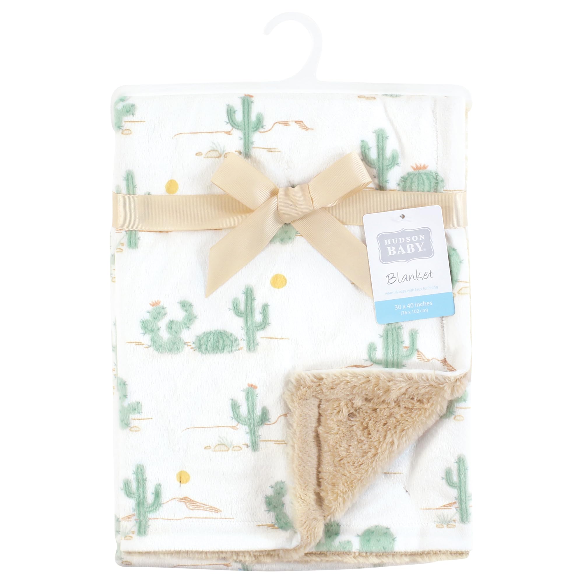 Hudson Baby plush blanket with furry binding is a super soft, warm and cozy baby blanket to add to your little one's nursery. Measuring 30x40 inches, our blanket is soft and gentle on baby's skin and great for everyday use. Our blanket is great for snuggle and sleep, but also as a stroller cover, car seat blanket and more.