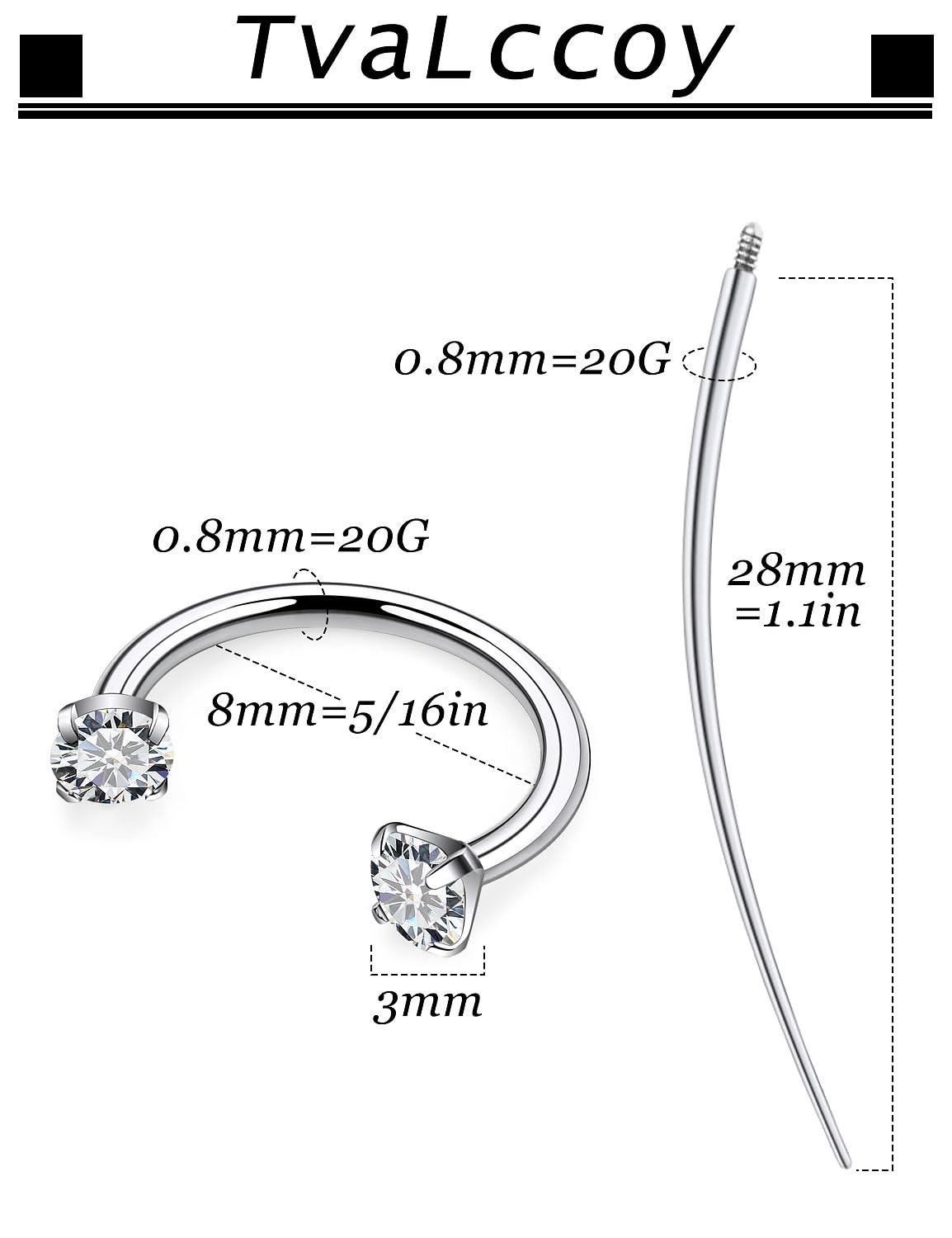 Dimension: All piercing jewelry is 20G=0.8mm, Inner diameter is 5/16in=8mm, Ends Diameter: 3mm.