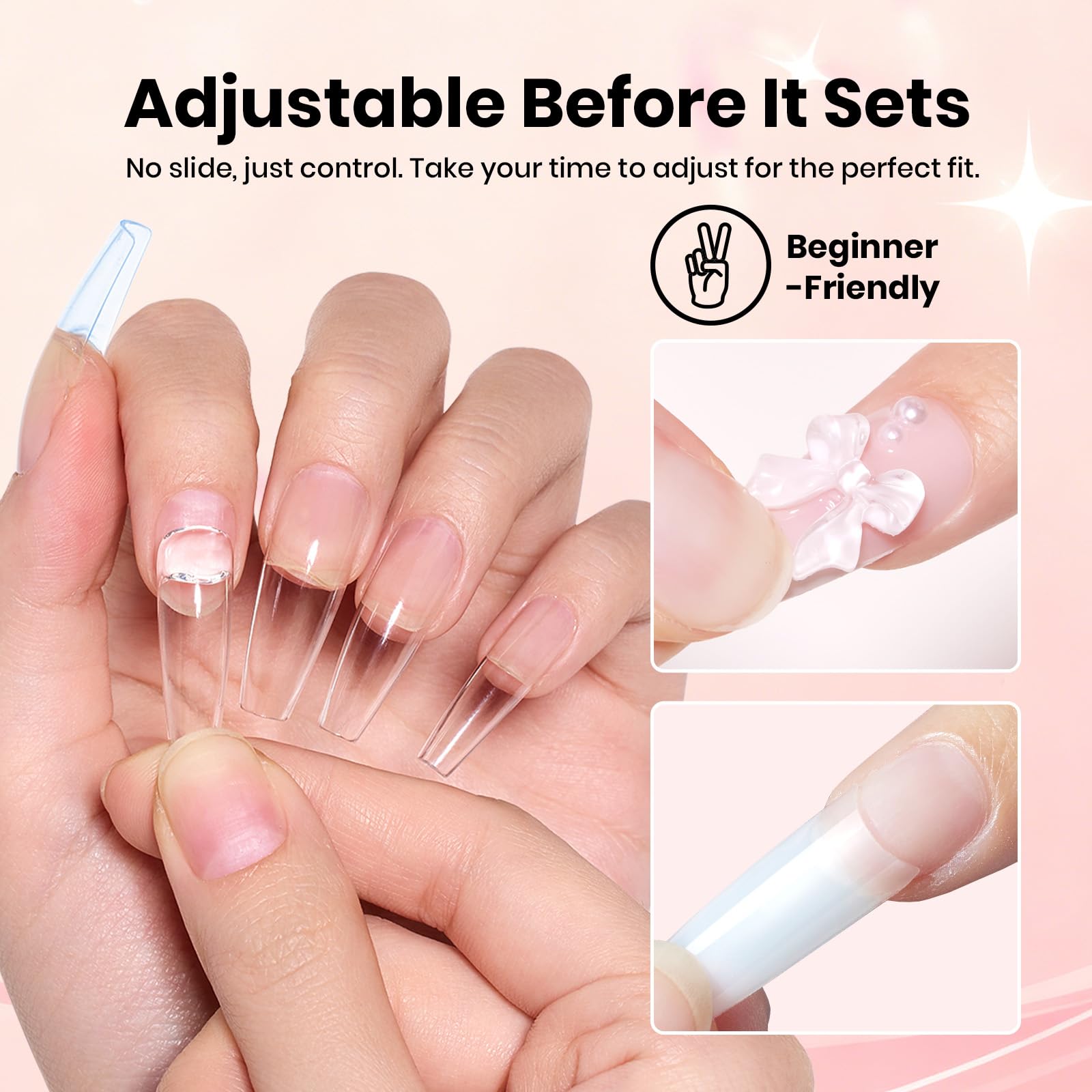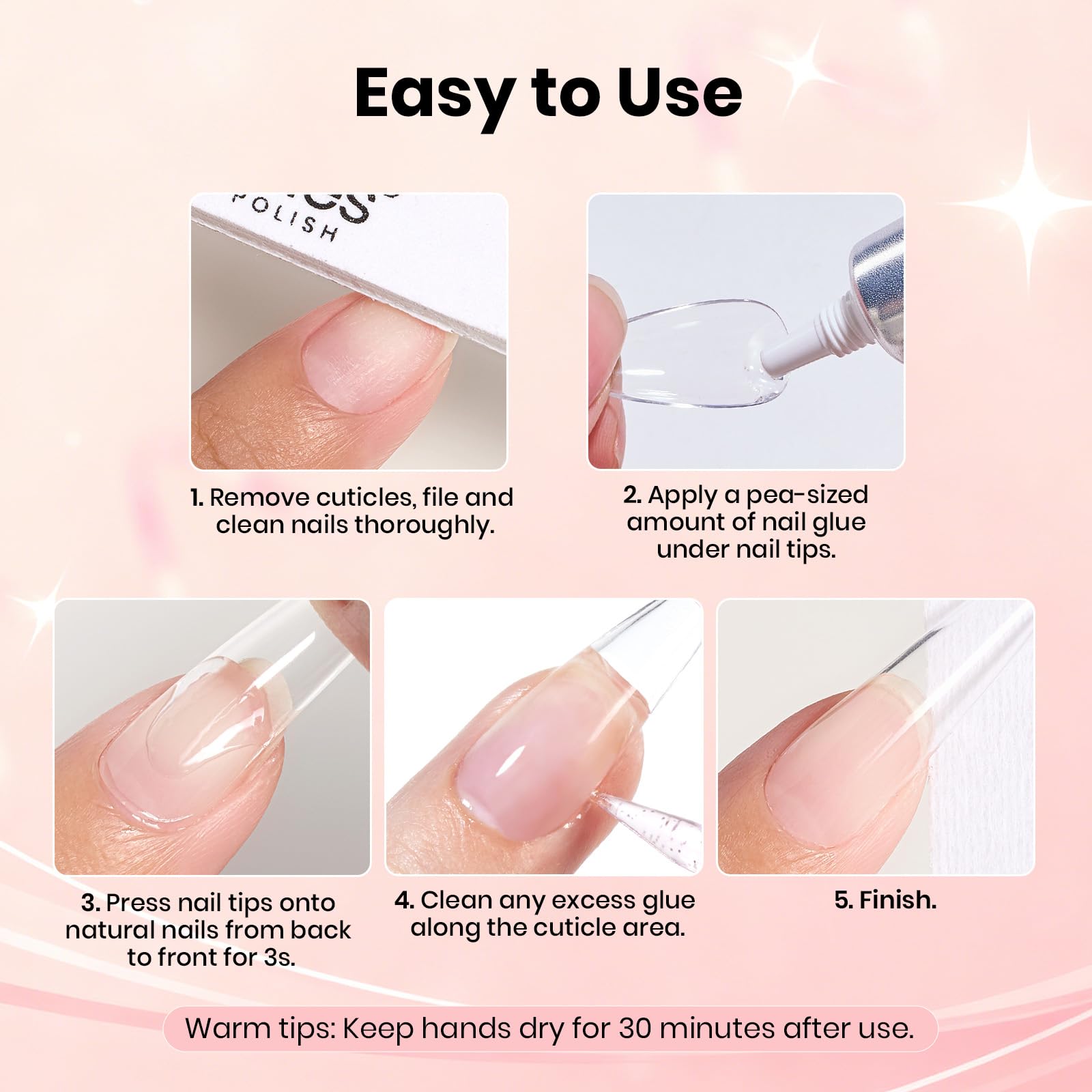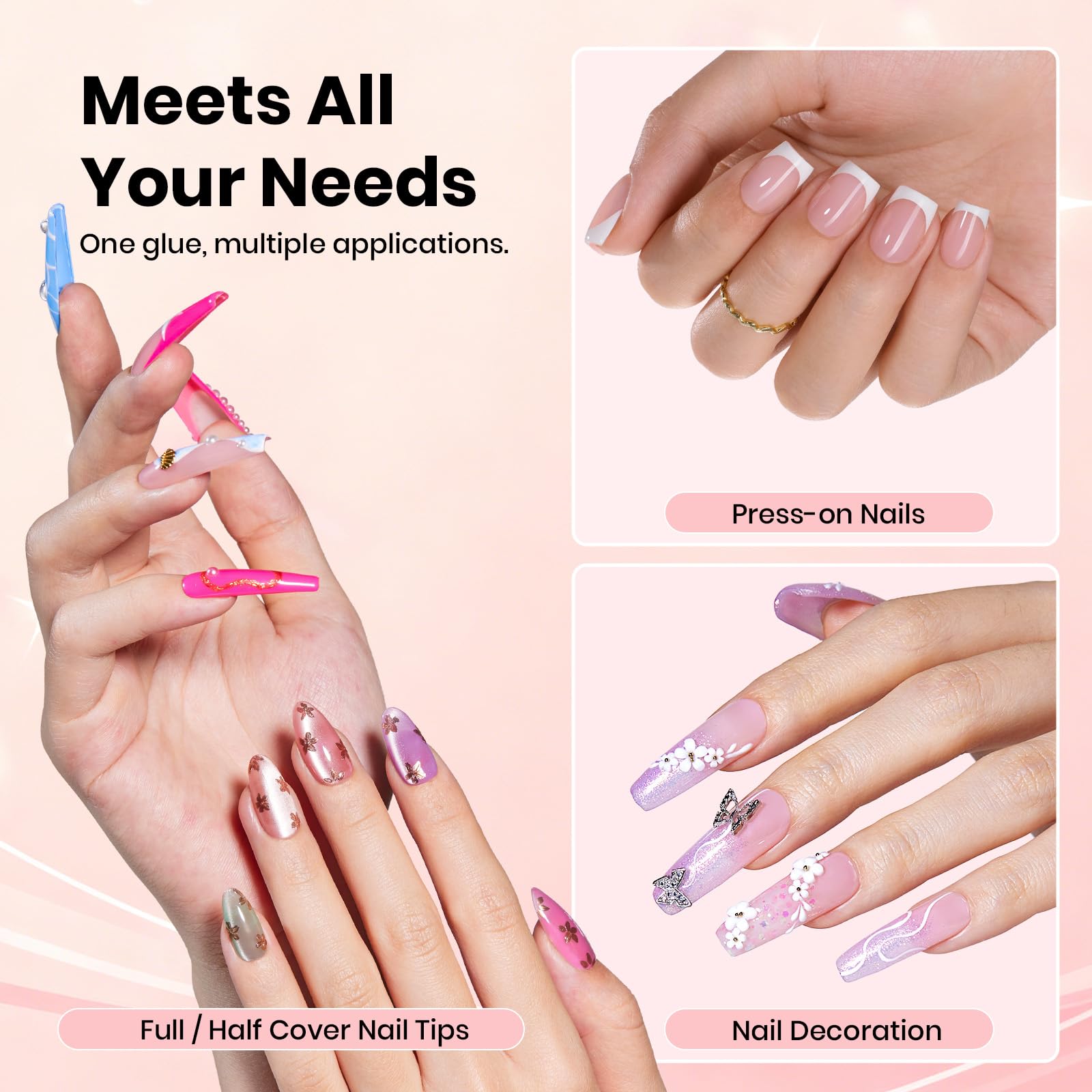 Multi-Use Nail Glue: Suitable for press-on nails, acrylic nails, half-cover nail tips and rhinestones. One glue meets different DIY and salon nail needs.