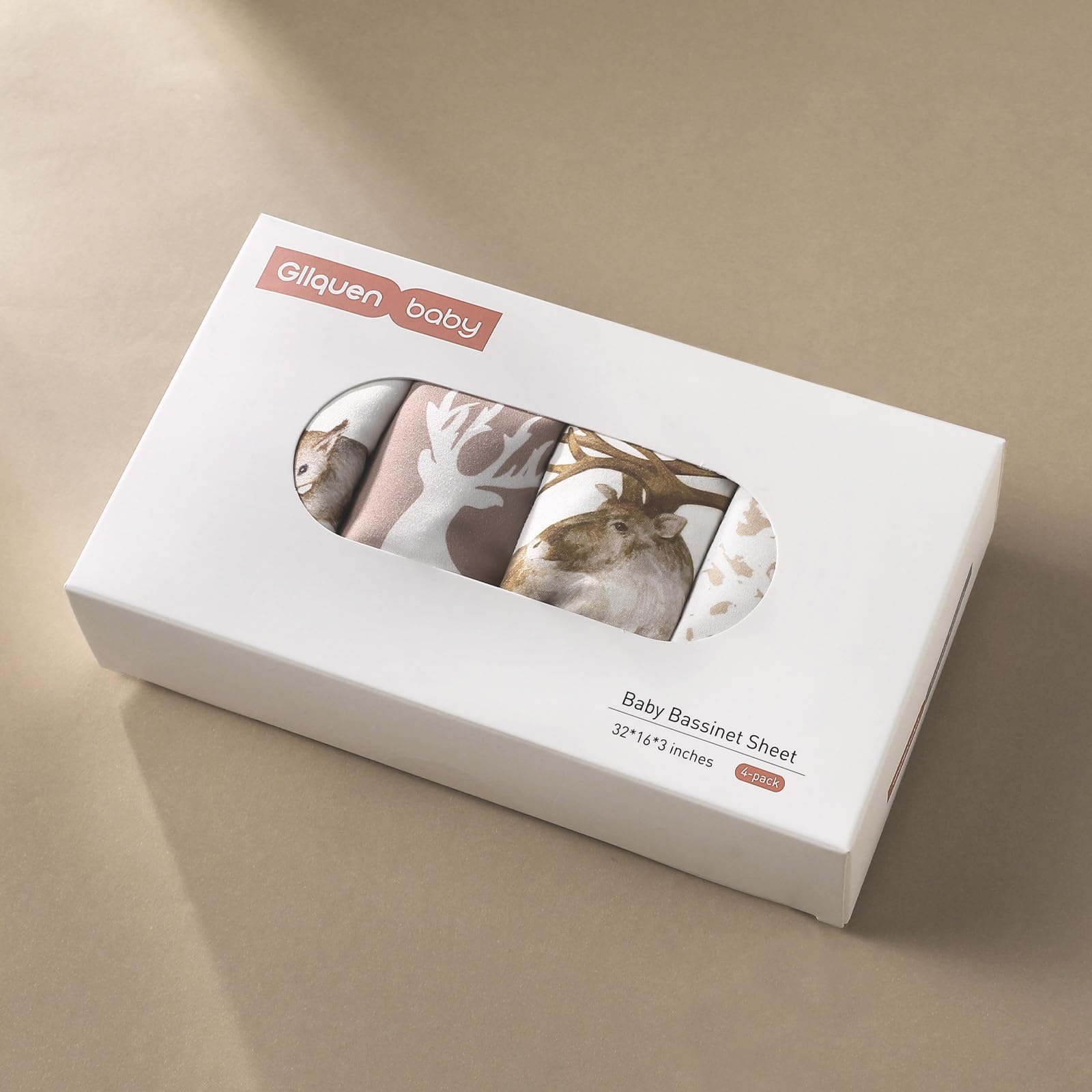 SUPER SOFT FABRIC: Our baby bedding bassinet sheets are made of soft and breathable fabric that best fits the standard bassinet crib. The elastic band surrounds the mattress, so mothers will not worry that it will slip away, creating a comfortable and stable sleeping space for the baby. Rest assured, every product meets the OEKO-TEX Standard 100 and is safe for babies