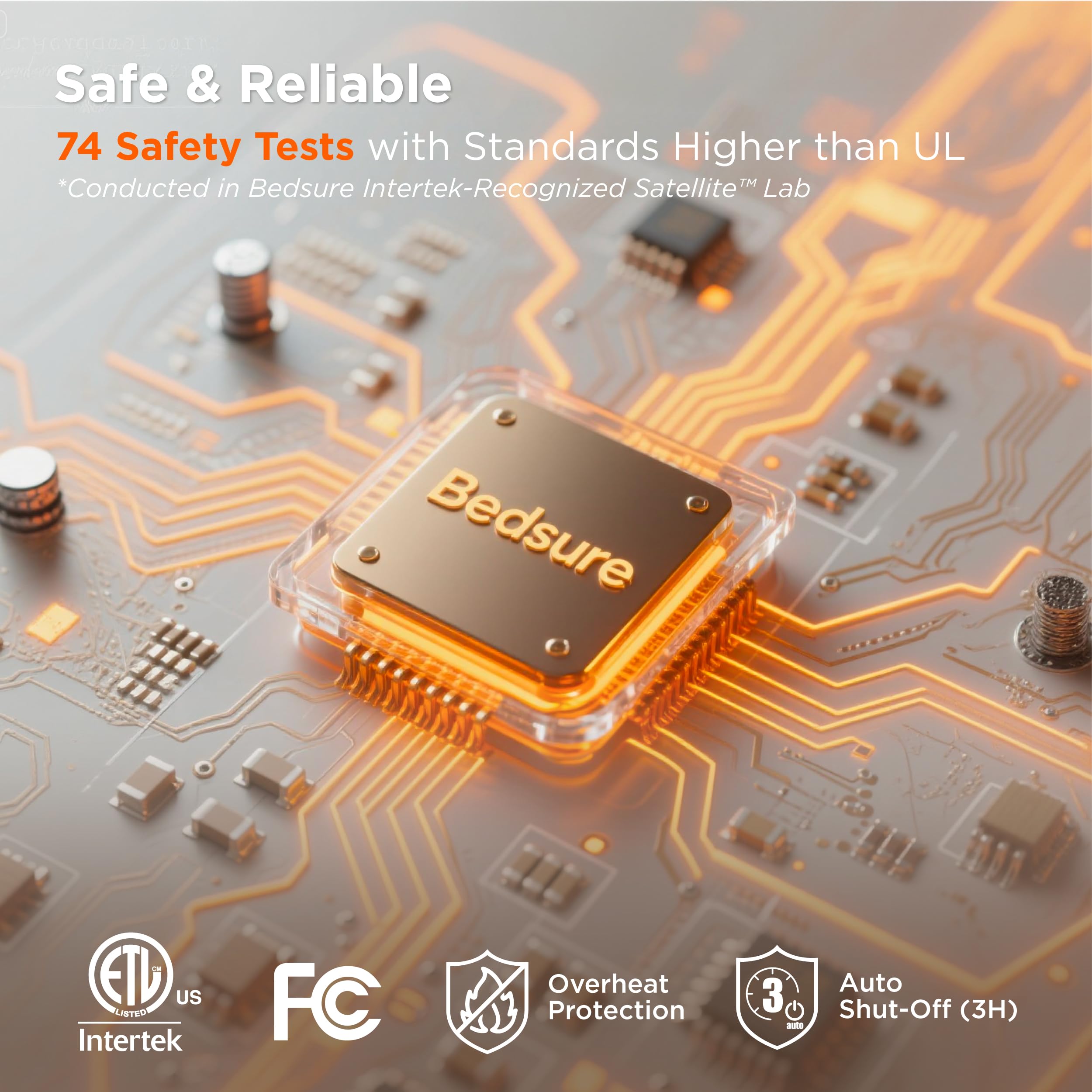 Safer & More Reliable: Tested in Bedsure’s Intertek-recognized lab with 74 safety checks that exceed UL standards, this ETL and FCC-certified heated blanket ensures dependable performance. The 3-hour auto shut-off prevents overheating, giving you peace of mind and making it a thoughtful gift for any household