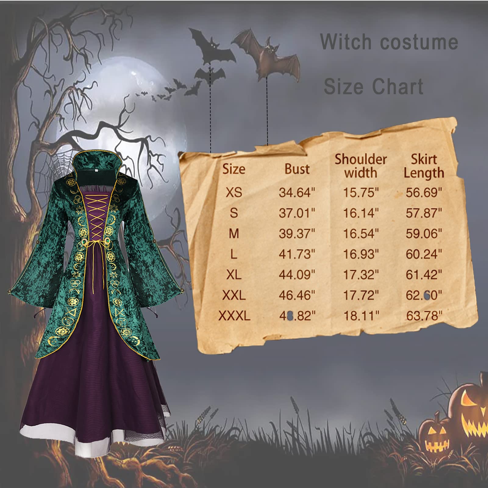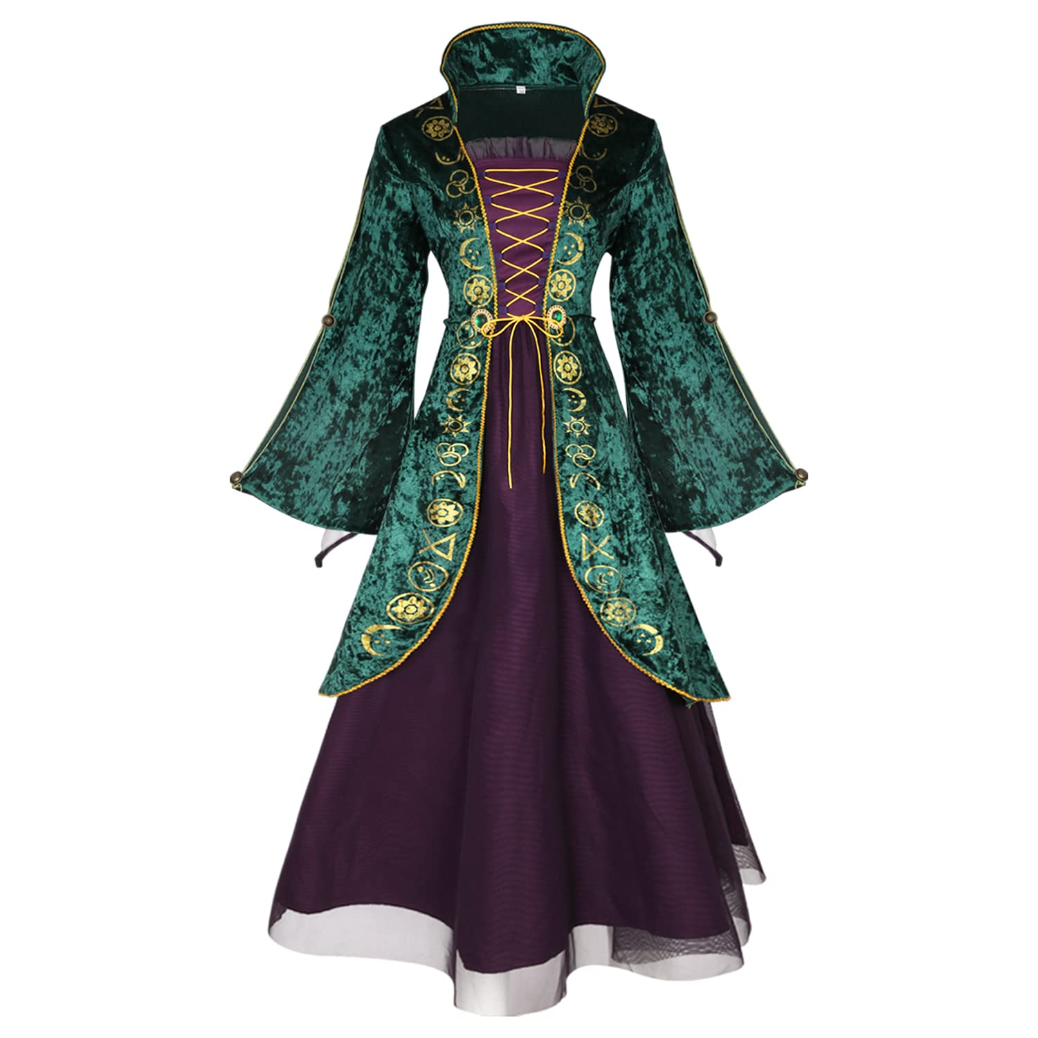 Material: high quality satin, veltvet. Soft and Comfortable sarah sanderson costume adult Cosplay Halloween witch dress