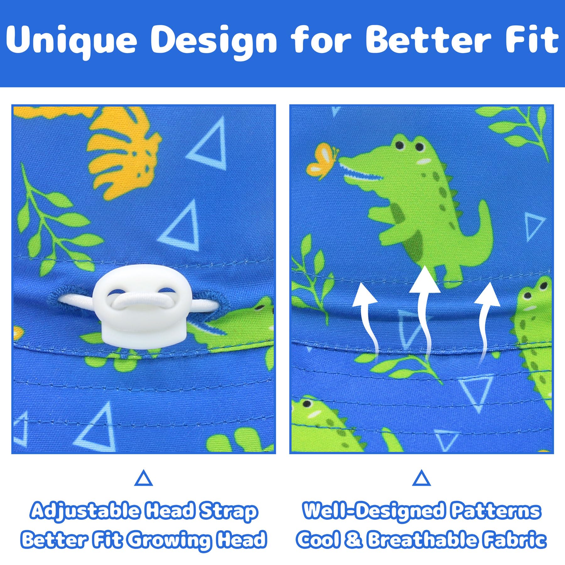UNIQUE & VIVID PATTERN DESIGN: Unique and exquisite animal patterns on our baby swim hat will catch the attention of babies at a glance! It not only adds more fun to our toddler swim hat, making children more willing to wear it, but also helps to broaden horizons and stimulate their curiosity about the outside natural world. Fashionable in appearance and rich in color, the toddler boy sun hat can easily match with baby's various daily outfits and make our baby more adorable in the crowd.