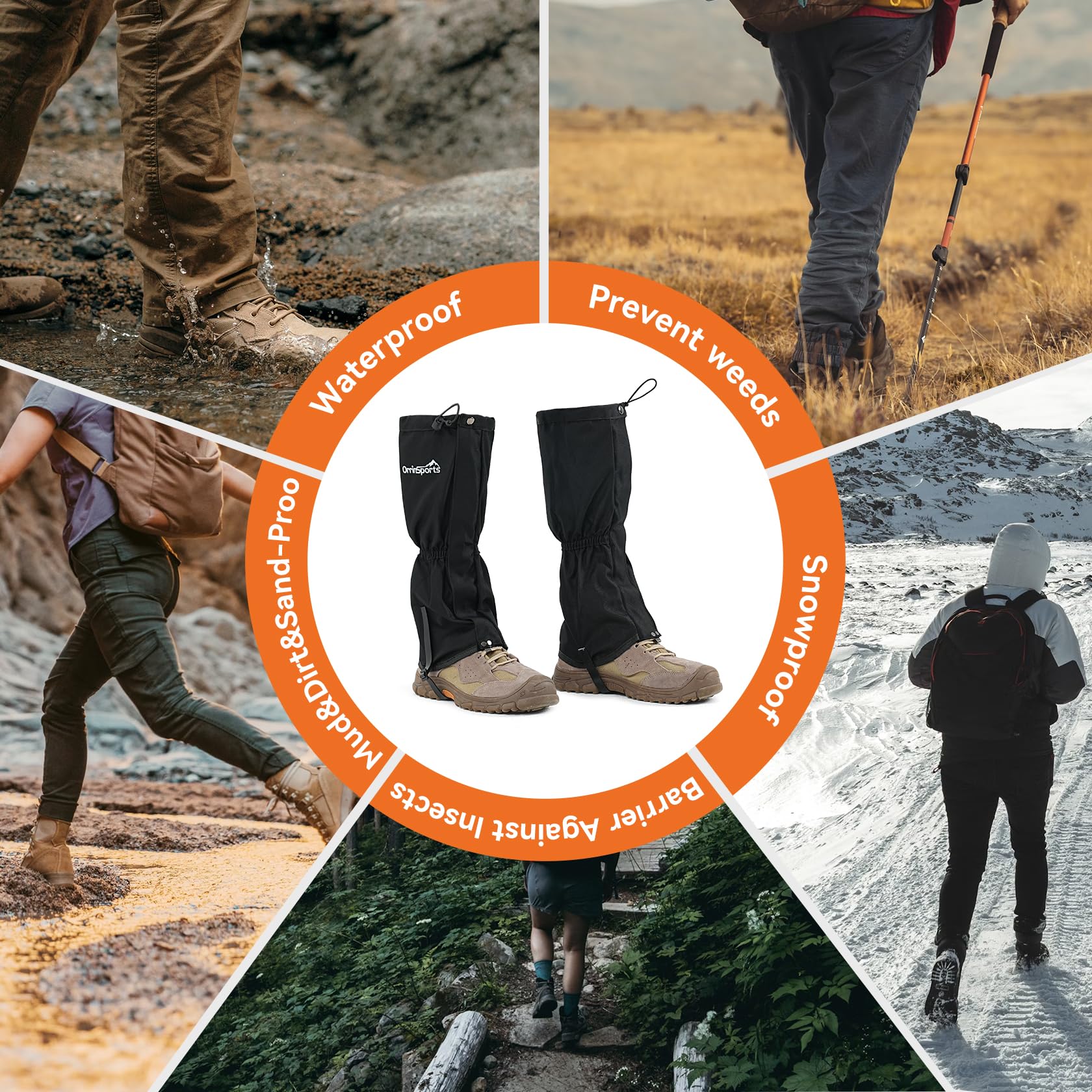 VERSATILITY:Shoe gaiters are perfect for hiking, snowshoeing, hunting,trekking,skiing, jungle, muddy areas, rainy wetlands, rocky climbs, and other scenarios, can also be used in lawn work, with our boot gators, you can always keep your shoes comfortable inside in any harsh scenarios