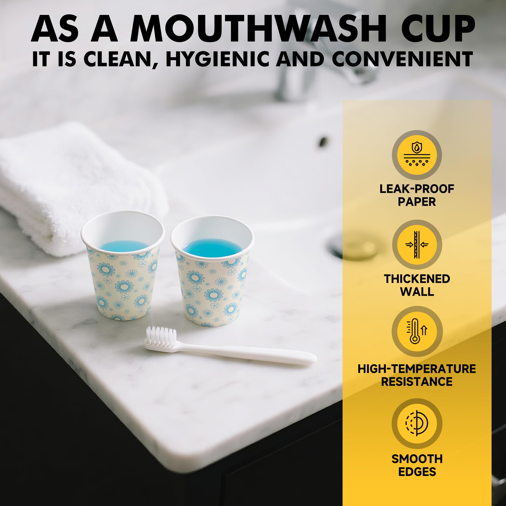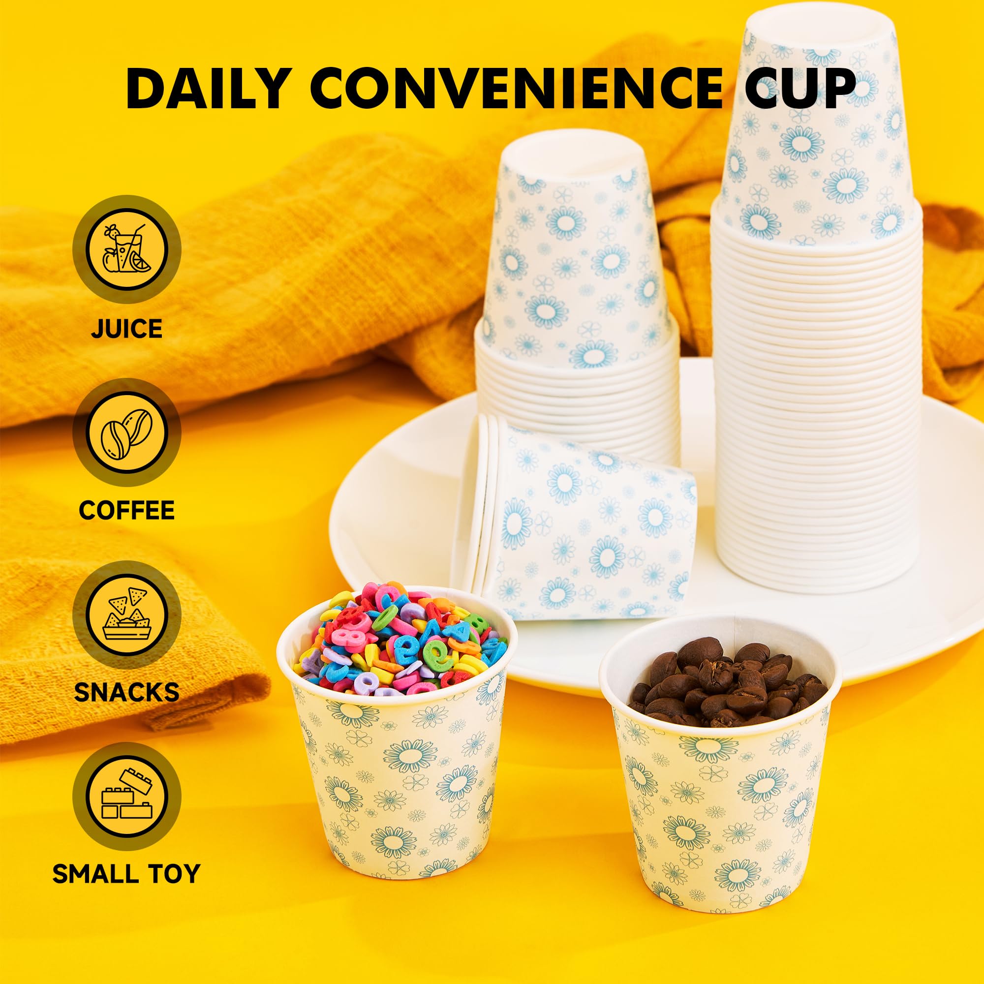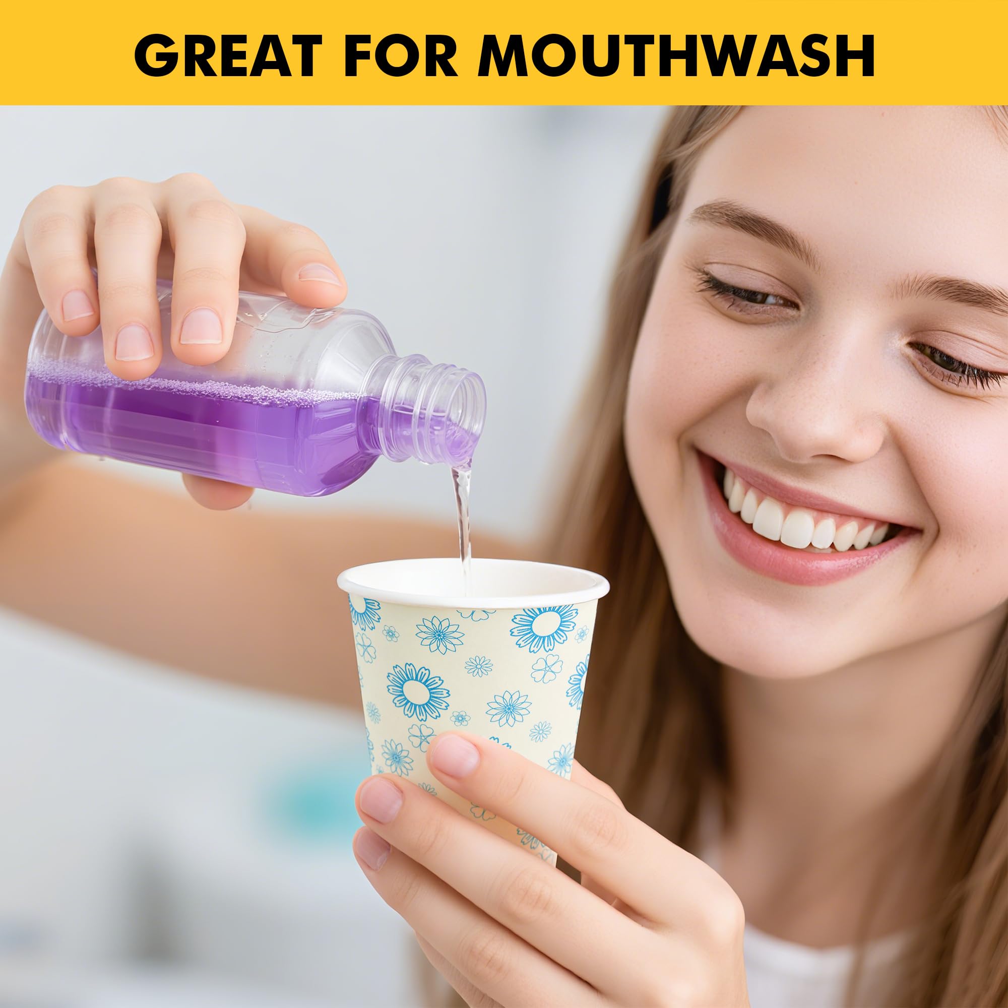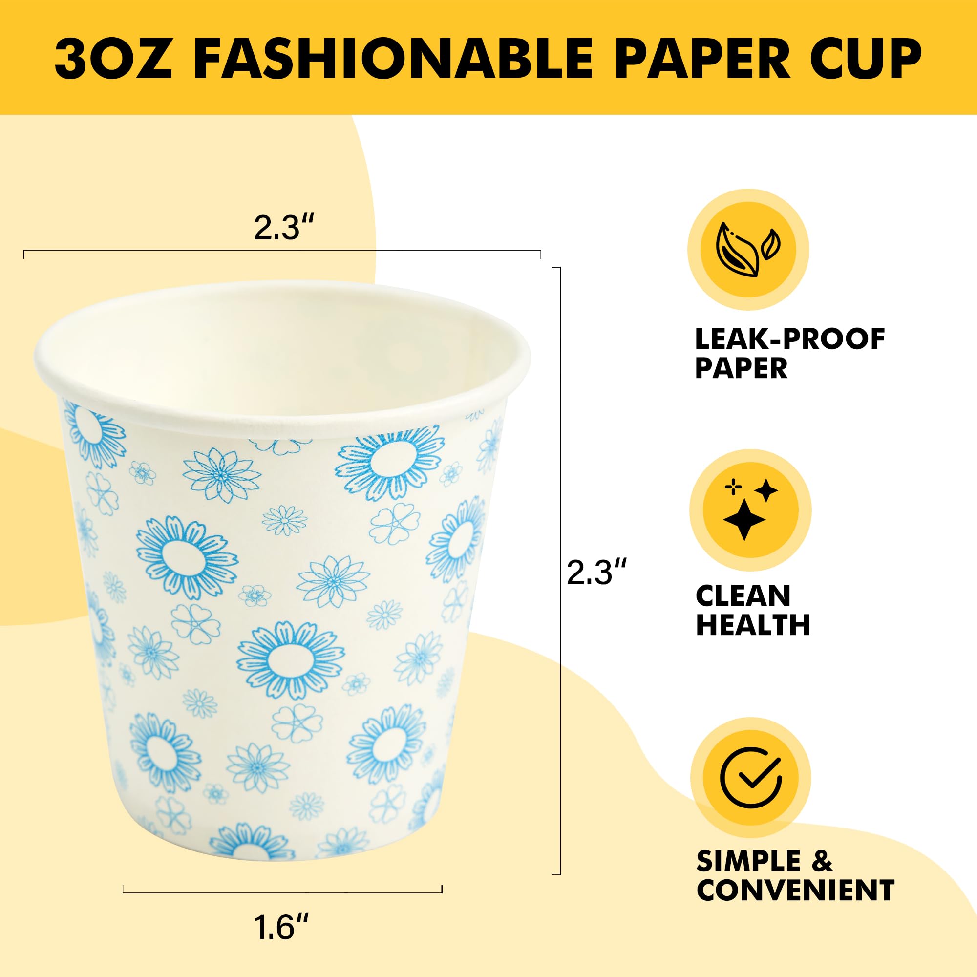NOT LEAK, DURABLE: Tiny 3oz paper cups are perfect for mouthwash cups, espresso cups, medicine cups, market tasting cups, rinse cups, drinking cups, snack cup