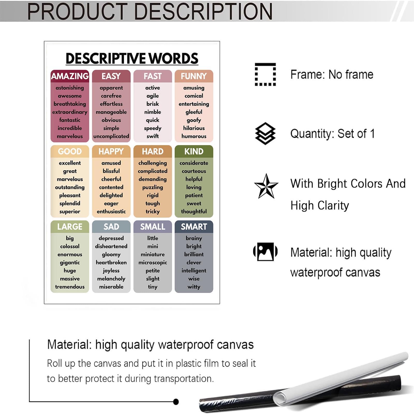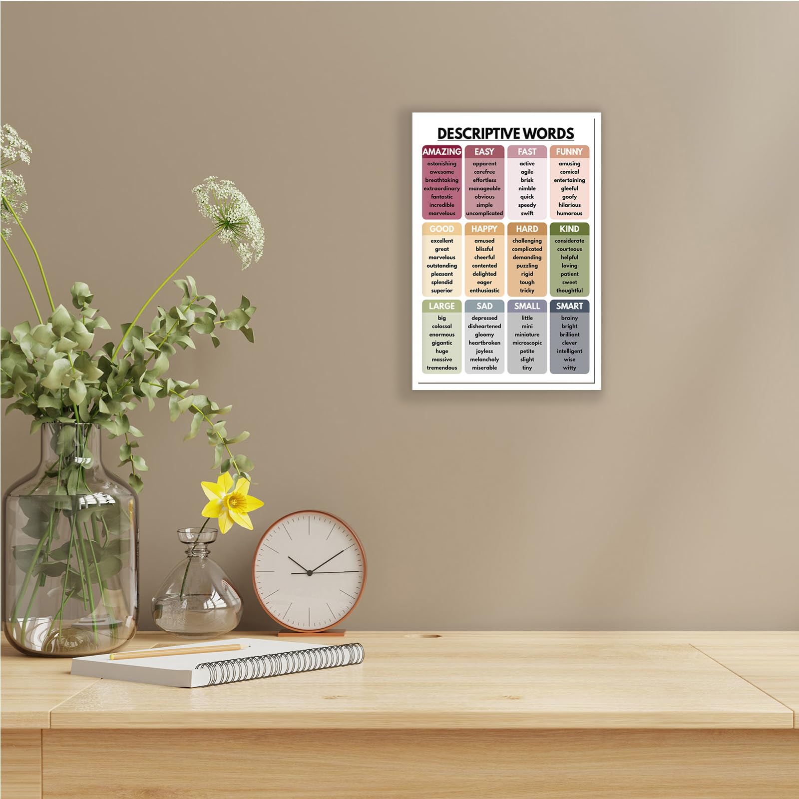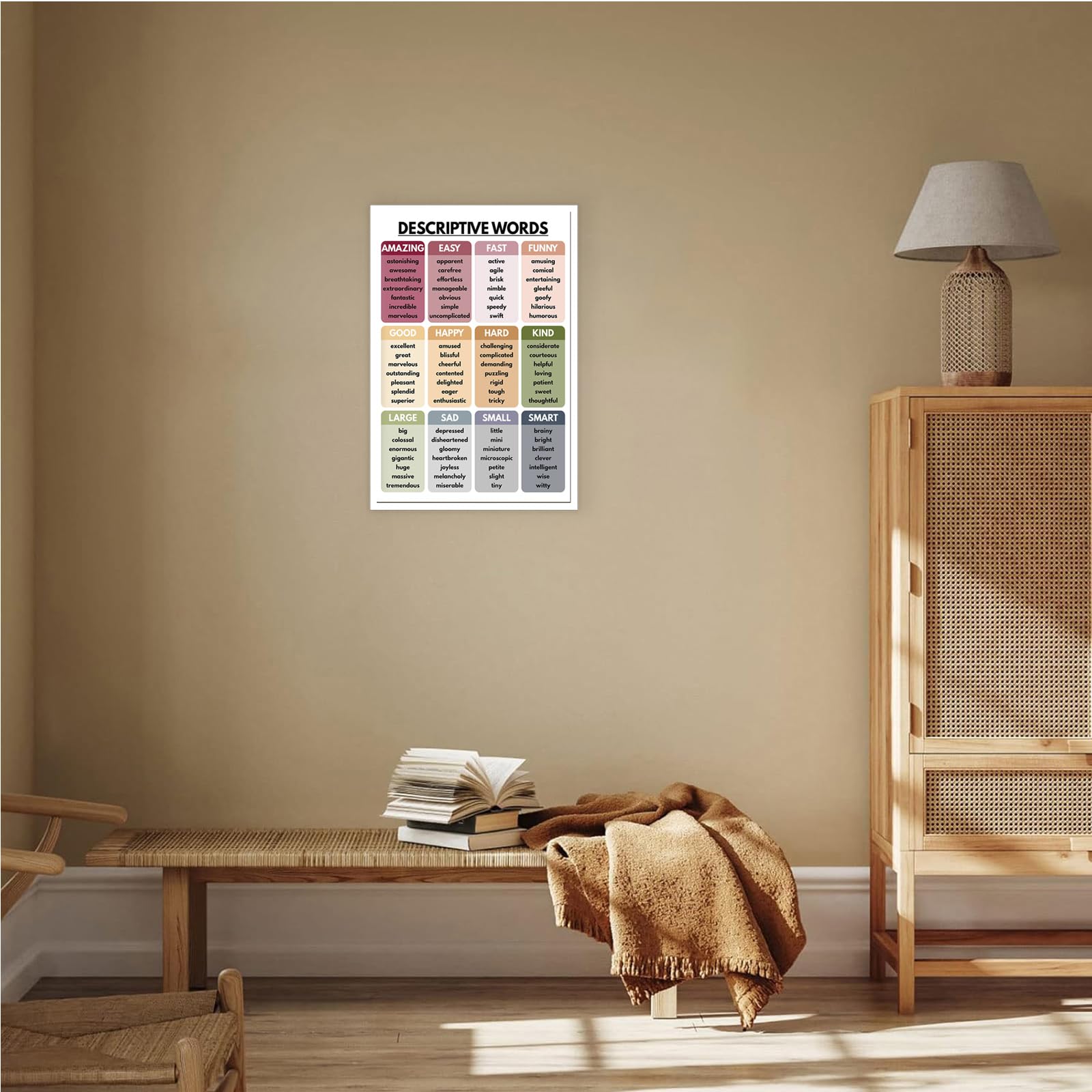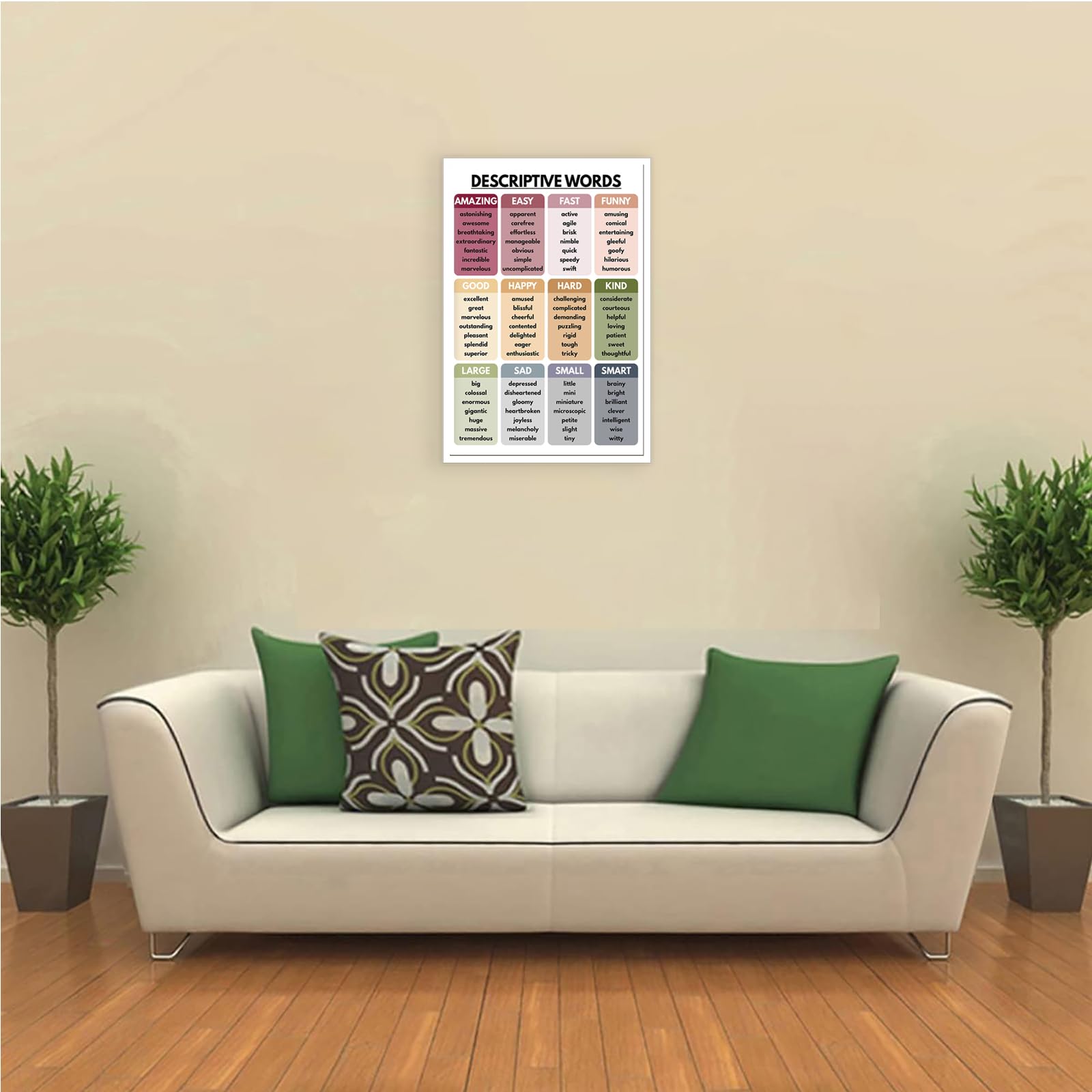 Aesthetic Design: Featuring trendy and descriptive words, these posters bring a modern and stylish look to your walls, making them perfect for creating an aesthetic and welcoming environment.