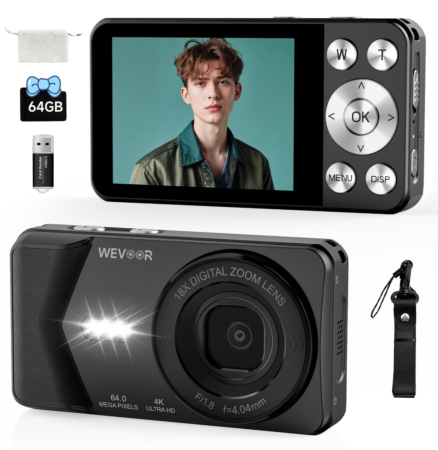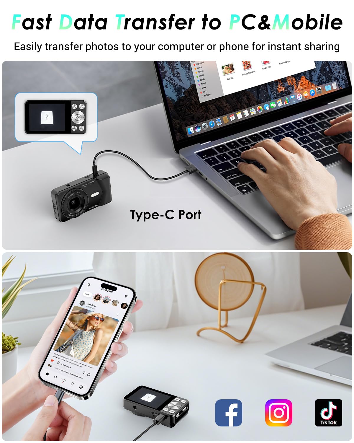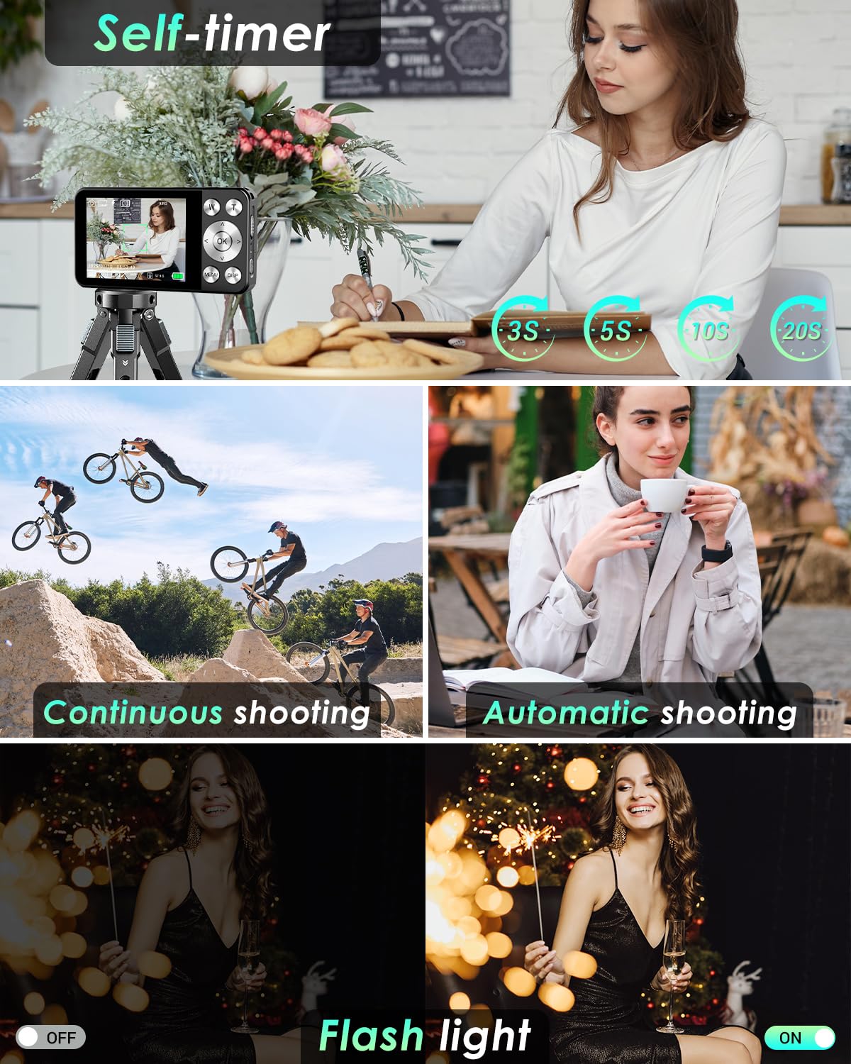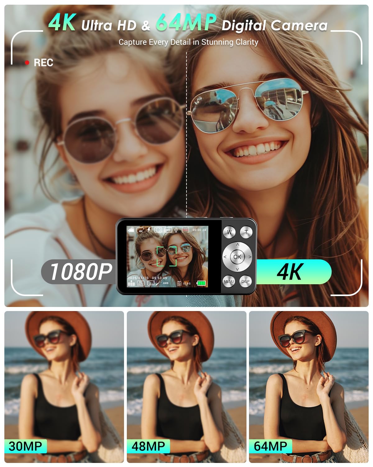 4K 64MP Autofocus Digital Camera: Say goodbye to blurry, grainy photos. Our upgraded CMOS sensor delivers crystal-clear 64MP pictures and smooth 4K video. Fast autofocus ensures your subjects are sharp and in focus - just point, shoot, and capture even the finest details