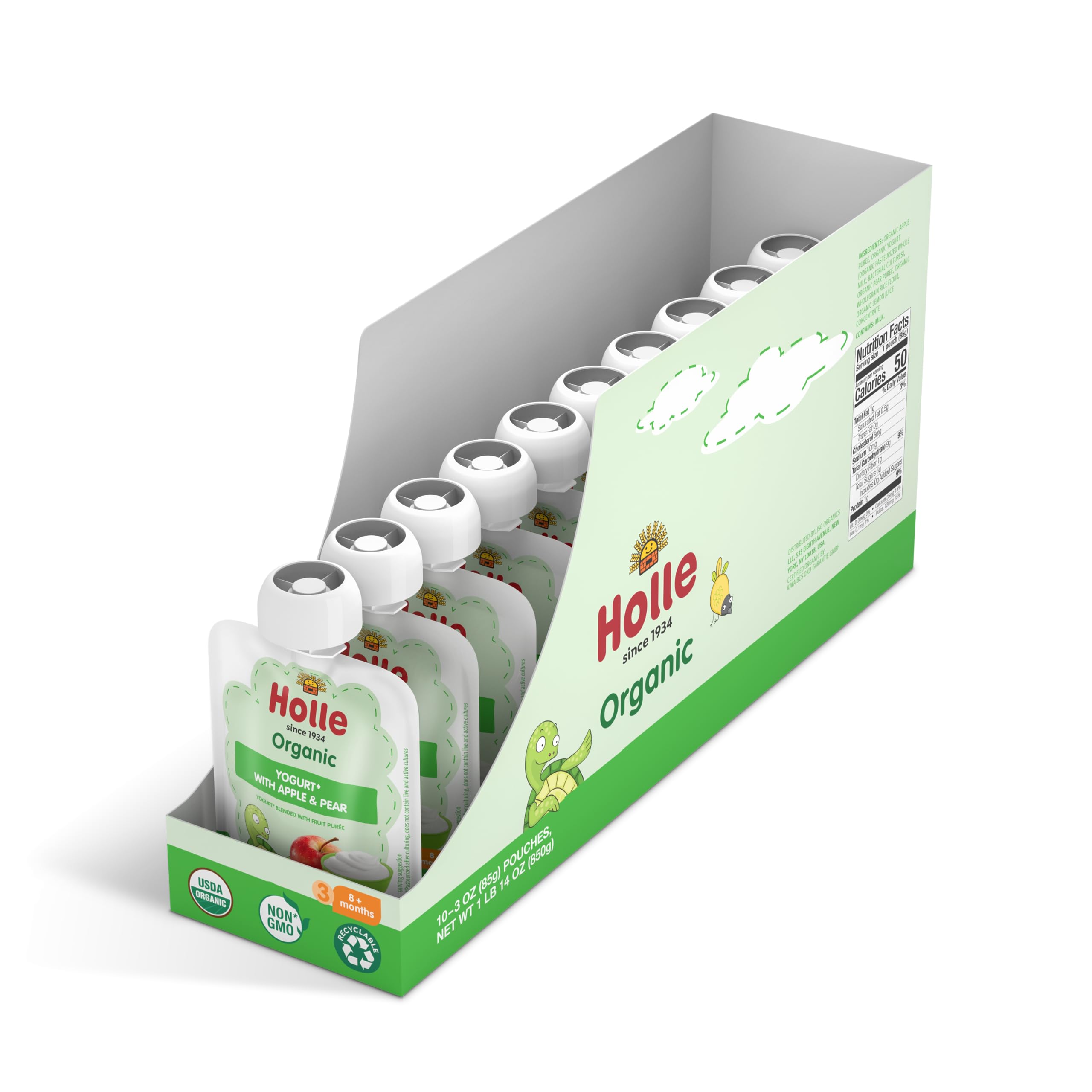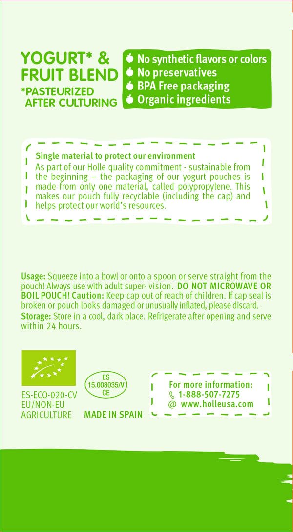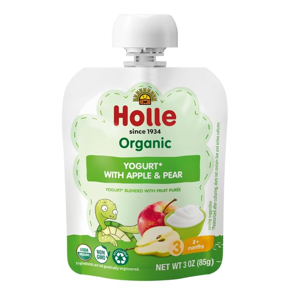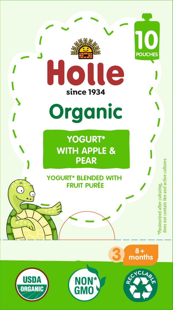 Healthy, Organic Ingredients - Holle baby yogurt pouches are made with USDA organic, non-GMO ingredients. This flavor combine drinkable yogurt with a delicious purée of apples and pears; and provides a great snack for babies eight months and up.