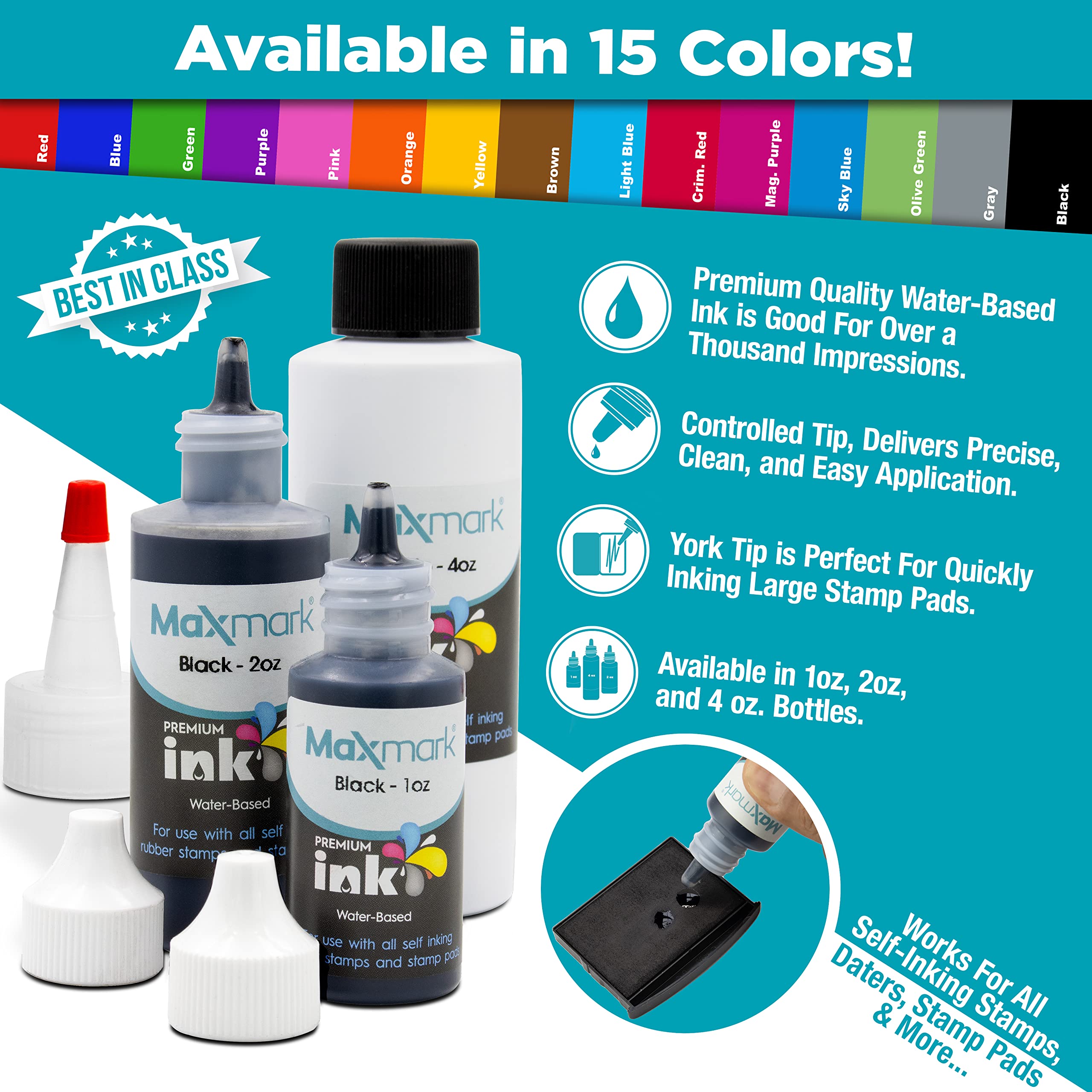 MaxMark Premium Refill Ink for self Inking Stamps and Stamp Pads, Black Color - Size 2 oz. bottle