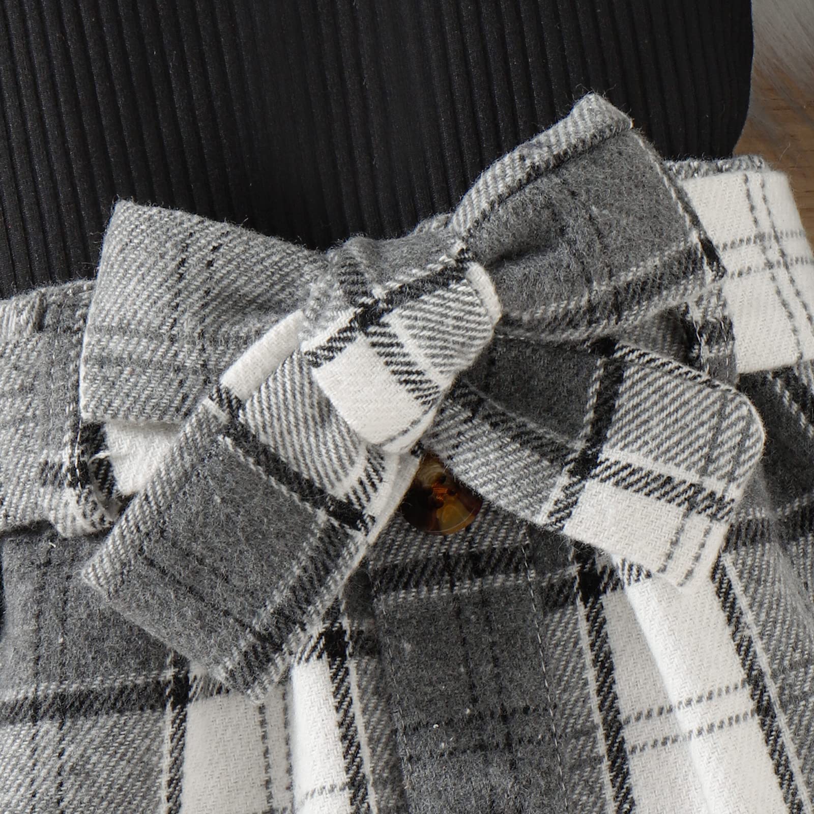 Appearance: Solid color,long sleeve,ribbed design,turtle neck,t-shirt tops,matching with plaid plead skirt,2pcs dress outfits clothes,make your little one more adorable and fashionable.