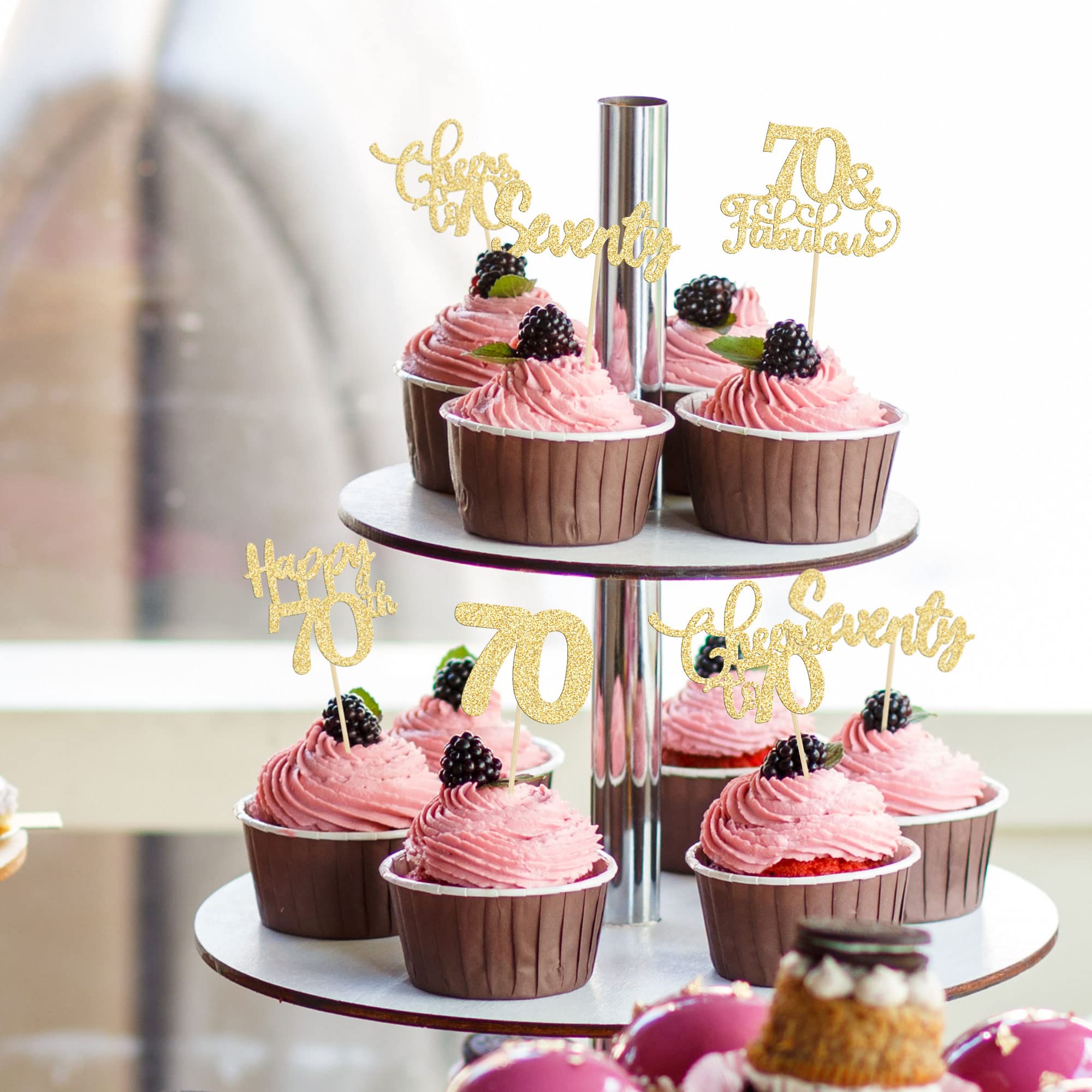 💖【No Assembly Required】: 30Pcs 70th Birthday Cupcake Toppers can put in the cake directly! These 30Pcs 70th Birthday Cupcake Toppers save your time and super easy to use. You can easily dress up your 70th theme cakes, yes! but don't stop there, put them into desserts, cookies, fruit pieces, appetizers, muffins and so much more!