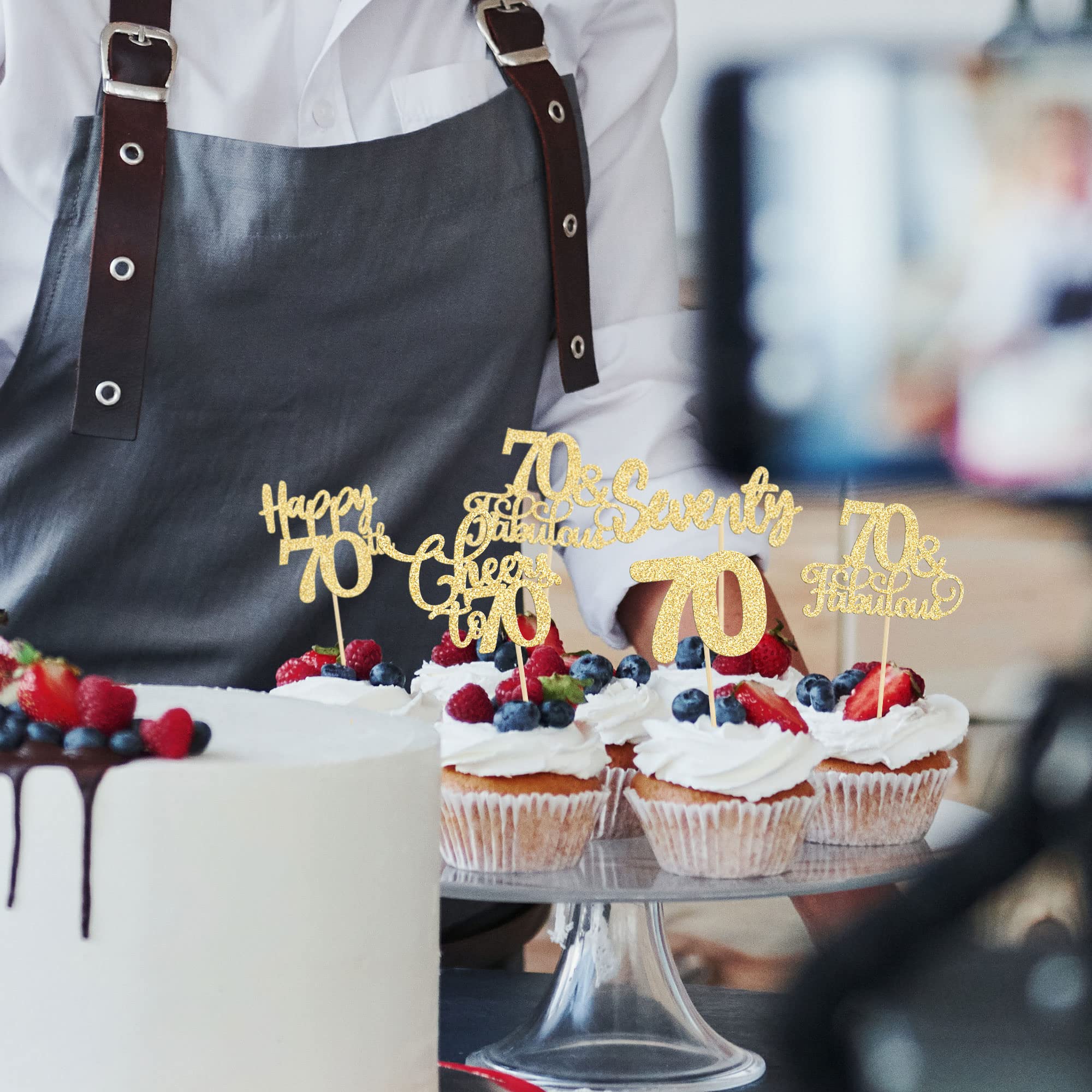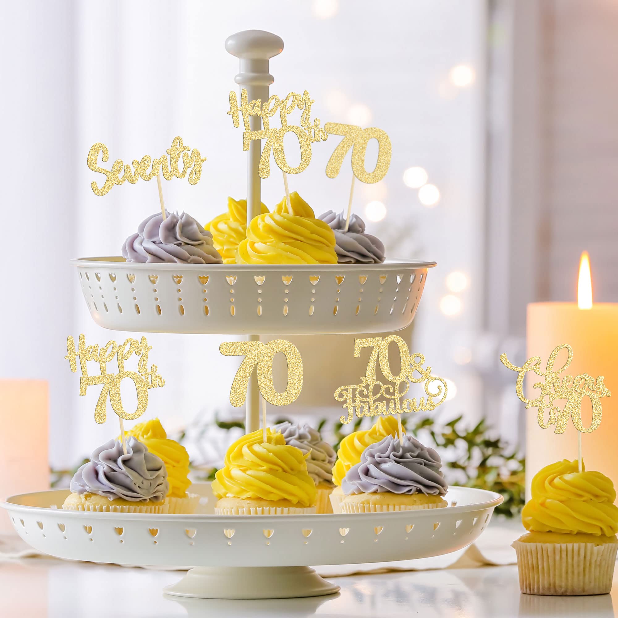 💖【100% Satisfaction Guarantee】Super value suit cupcake toppers for you, just take them to decorate your 70th Birthday theme party! Our highest priority is your satisfaction. These cupcake toppers are not and intended for decoration only, please do not use it in the oven or microwave.