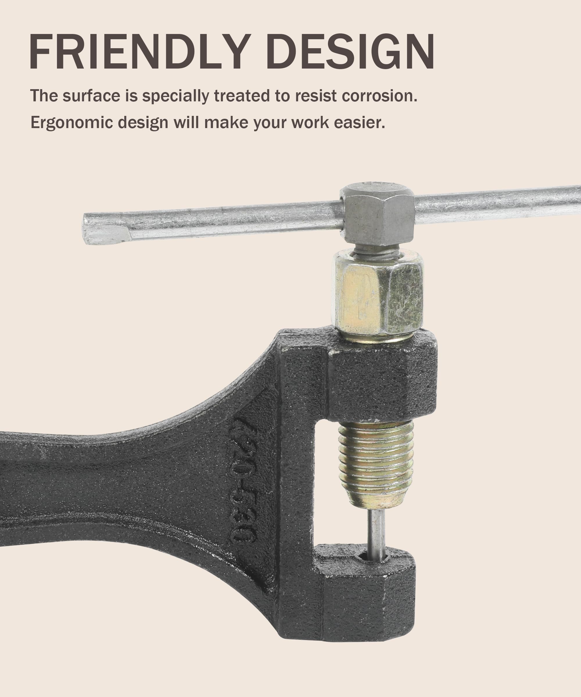 [High Quality Materials]The bicycle chain tool is made of high-quality steel, with a rust resistant surface and strong corrosion resistance. High hardness, less prone to deformation and fracture. The durable structure ensures long-lasting use and reliable performance.