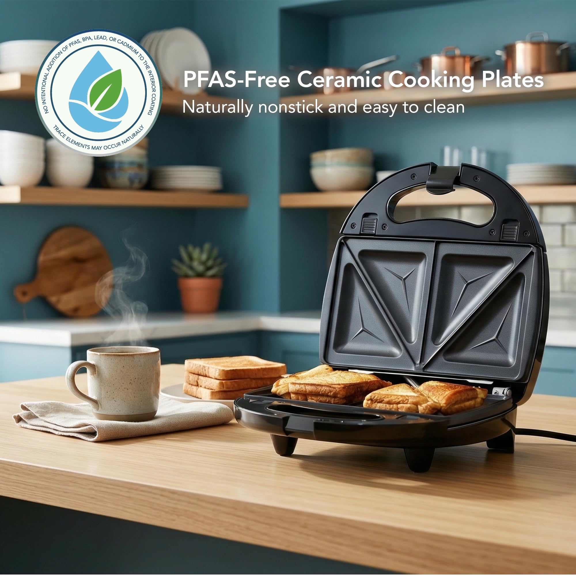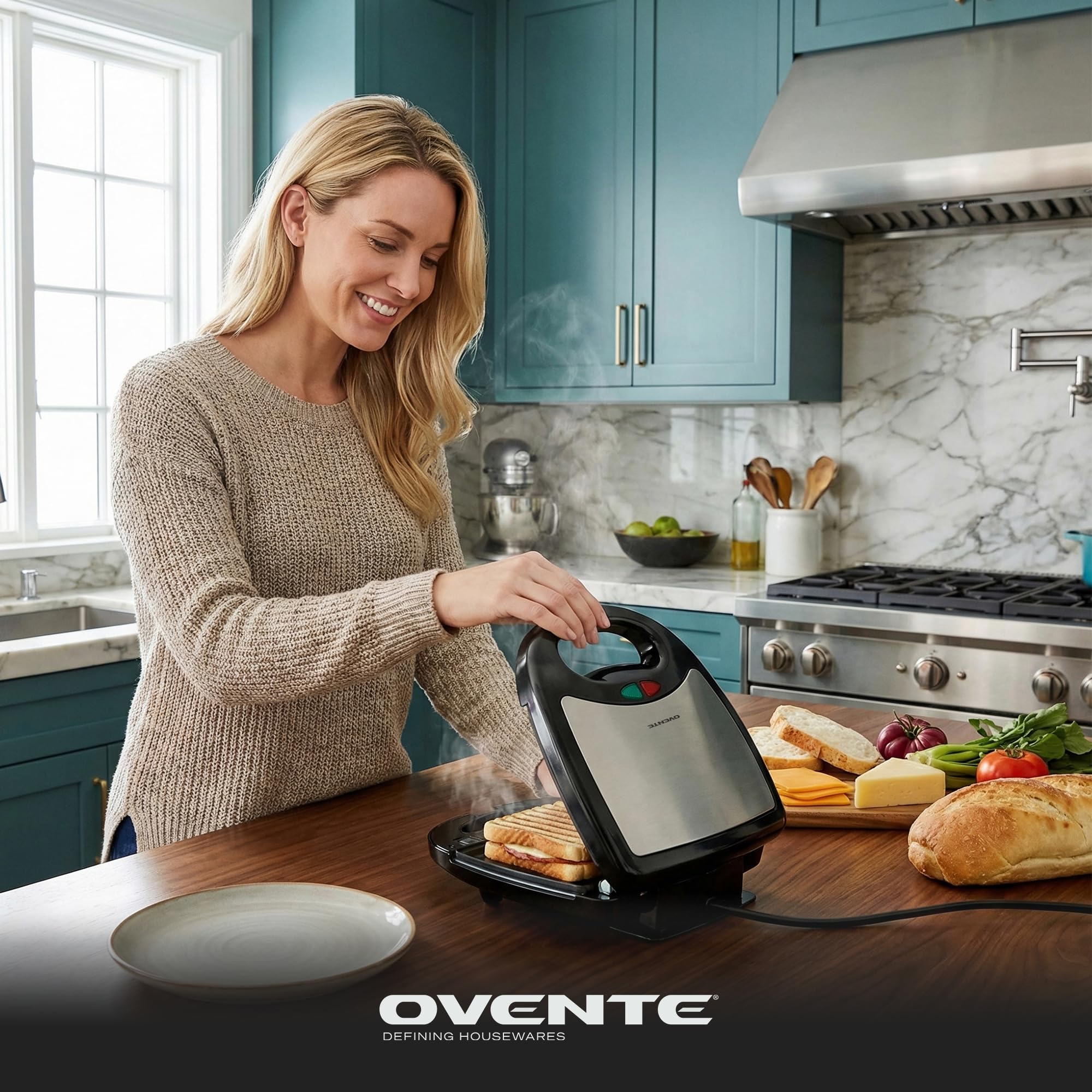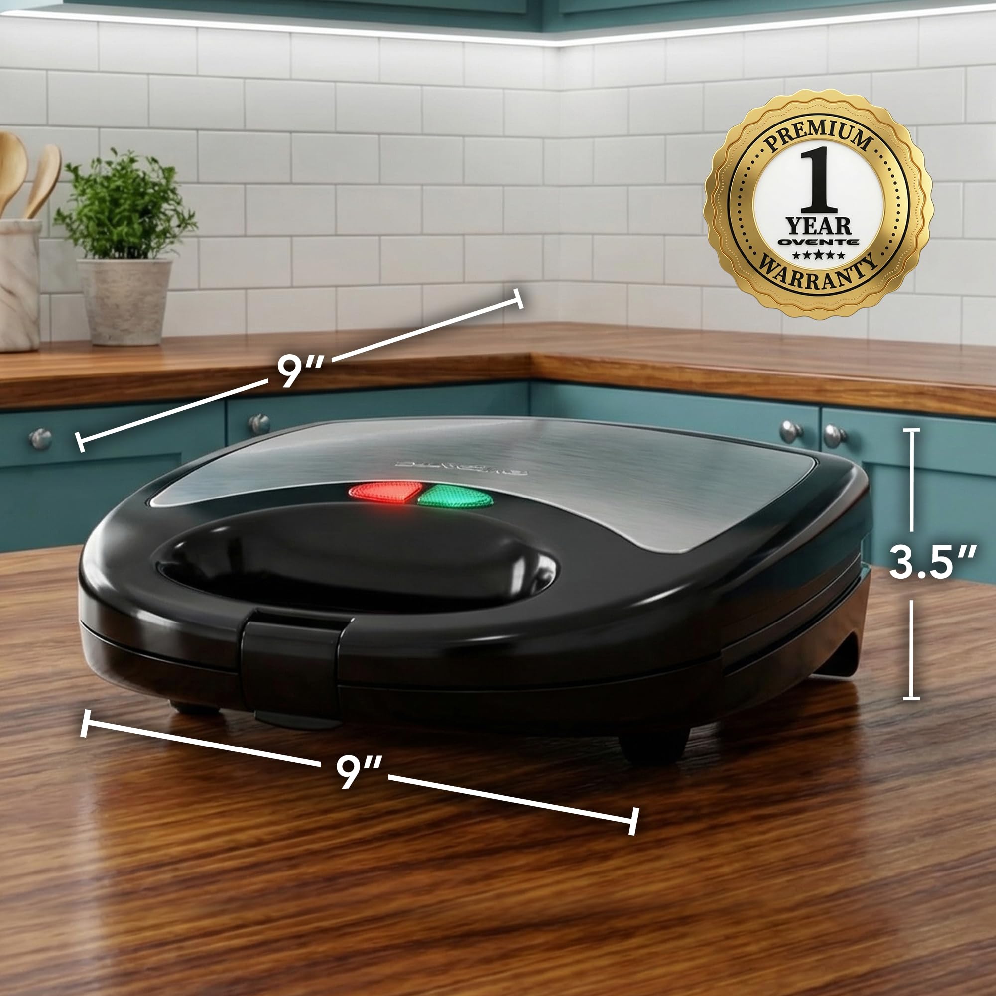 HOT SANDWICH READY IN MINUTES – High performance powered by 750 Watts (120V), its fast heating technology ensures quick and efficient sandwich preparation. Enjoy tasty sandwiches in no time with the OVENTE 3-in-1 Sandwich Maker.