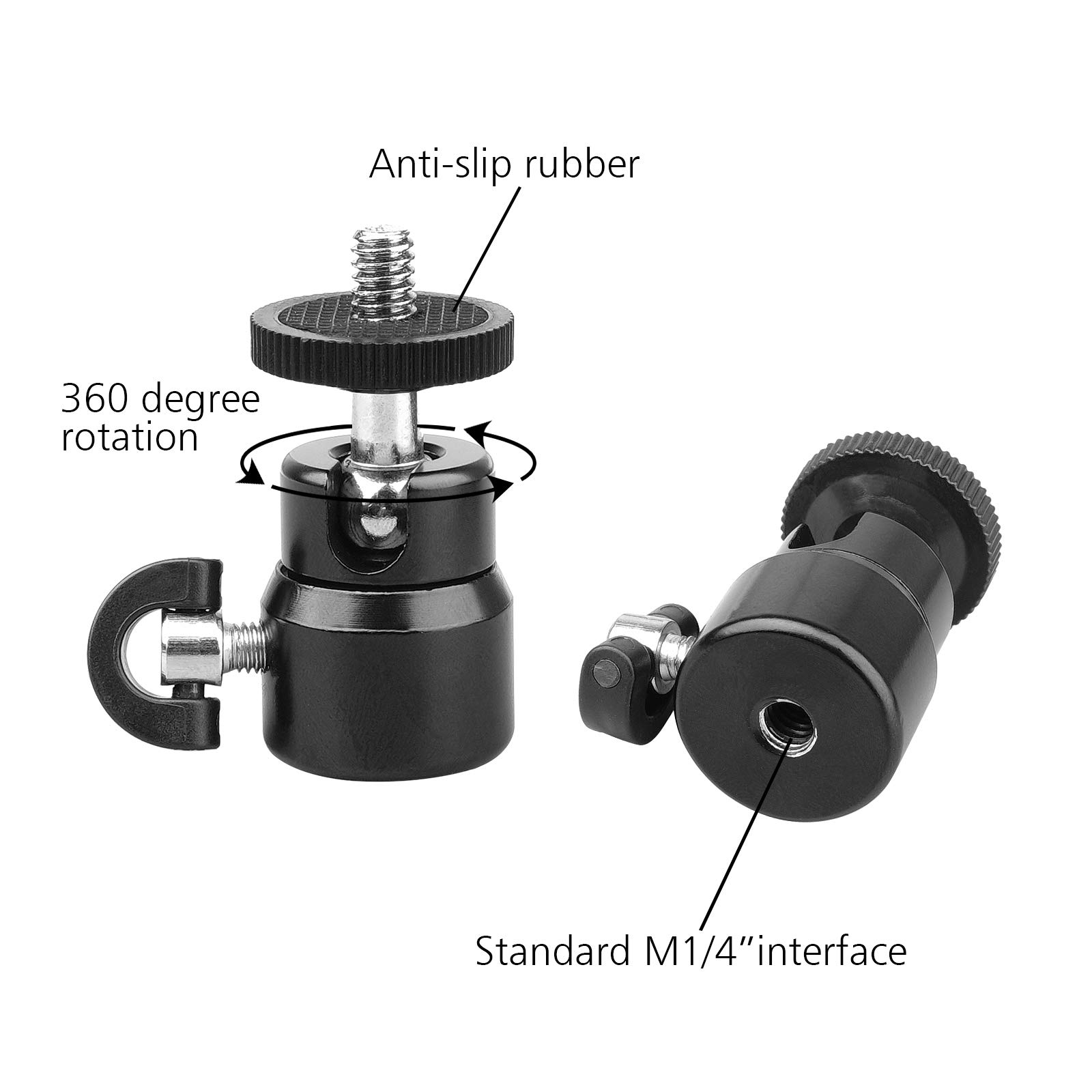 【Flexible Angle】- 1/4” head ball with 360 degree rotation provides your different angles. You can adjust the ball head to meet your need easily.With 1/4” head ball can mount the ring light. (Max Weight: about 0.8 lb,Please confirm that it is not suitable for heavy device.)