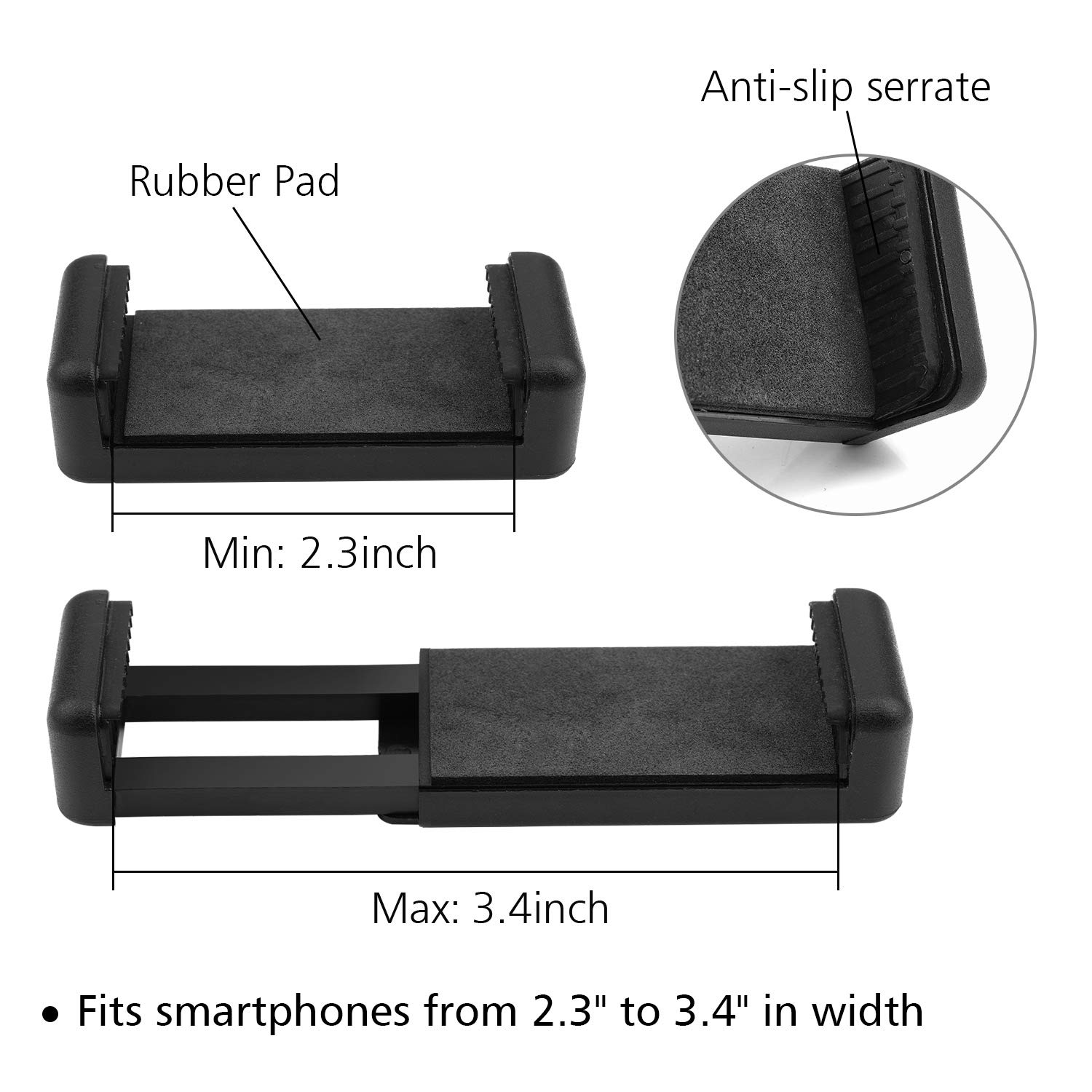 【Wide Compatibility】- Phone clamp fits most smartphones in market from 2.3" To 3.4" In width;landscape (horizontal) or portrait (vertical) can be adjusted.Phone holder with rubber pad prevent the phone from scratching.