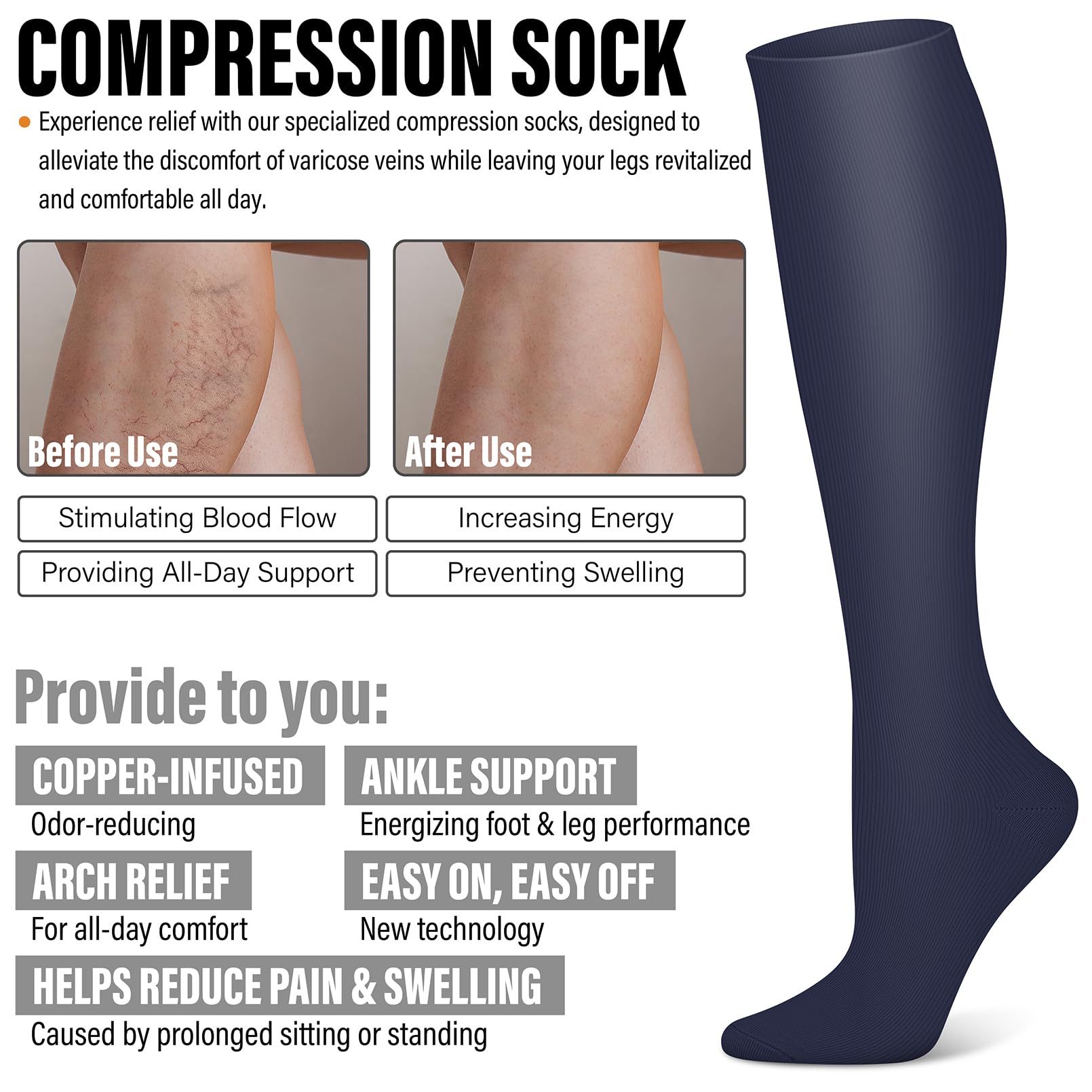 Ture Graduated Compression-Graduated compression is the most effective form of compression, and works differently than regular compression socks. Work by creating a 'pressure gradient' which helps to push oxygen-poor blood out of the feet and legs, and back to the heart. This improves circulation, boost energy levels, and relieves symptoms such as aches and pains, throbbing, swelling, blood pooling, provides the renewable and sustained energy and allows you to heal in the legs and feet.